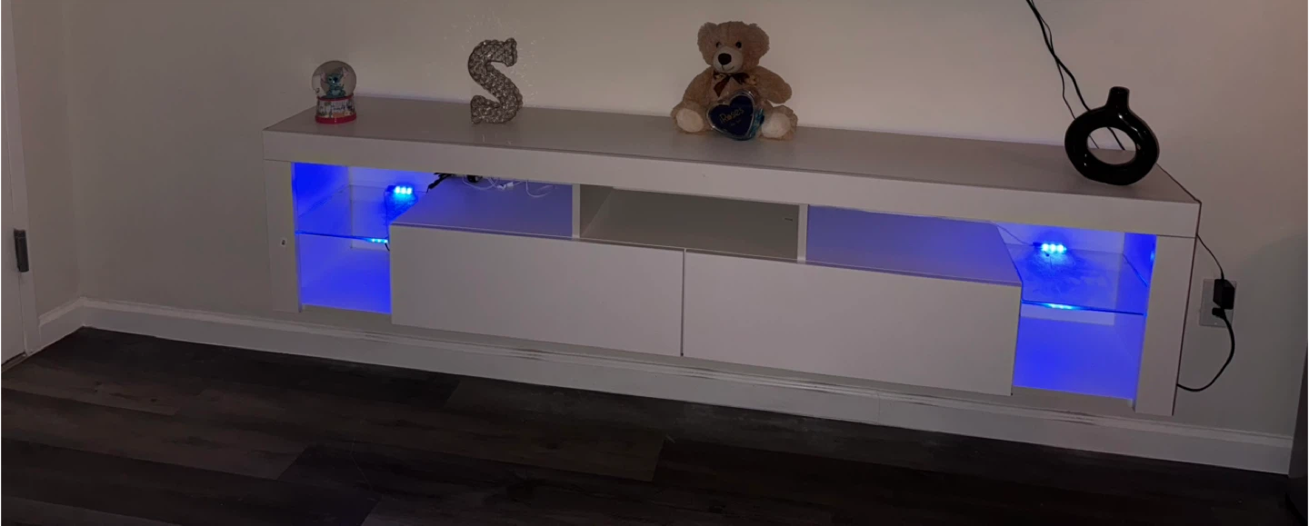 1 / 11 / 1Buy & SellWhite TV Stand with Blue LED LightsWhite TV Stand with Blue LED Lights$60Anchor your space in ultra contemporary style with this floating tv stand. Glass shelving. 78”W x 13.8”D x 17.7”H.ConditionLike newDimensions78”W x 13.8”D x 17.7”H. WHERE TO MEETCheck LocationView MapSELLERverifiedStavyAstoria600 reviews14 chats·1 favorites·444 viewsSEND CHAT TO SELLERHi Stavy! I’m interested in your listing.Hi Stavy! I’m interested in your listing.Get the Karrot app to chatSign In to chat