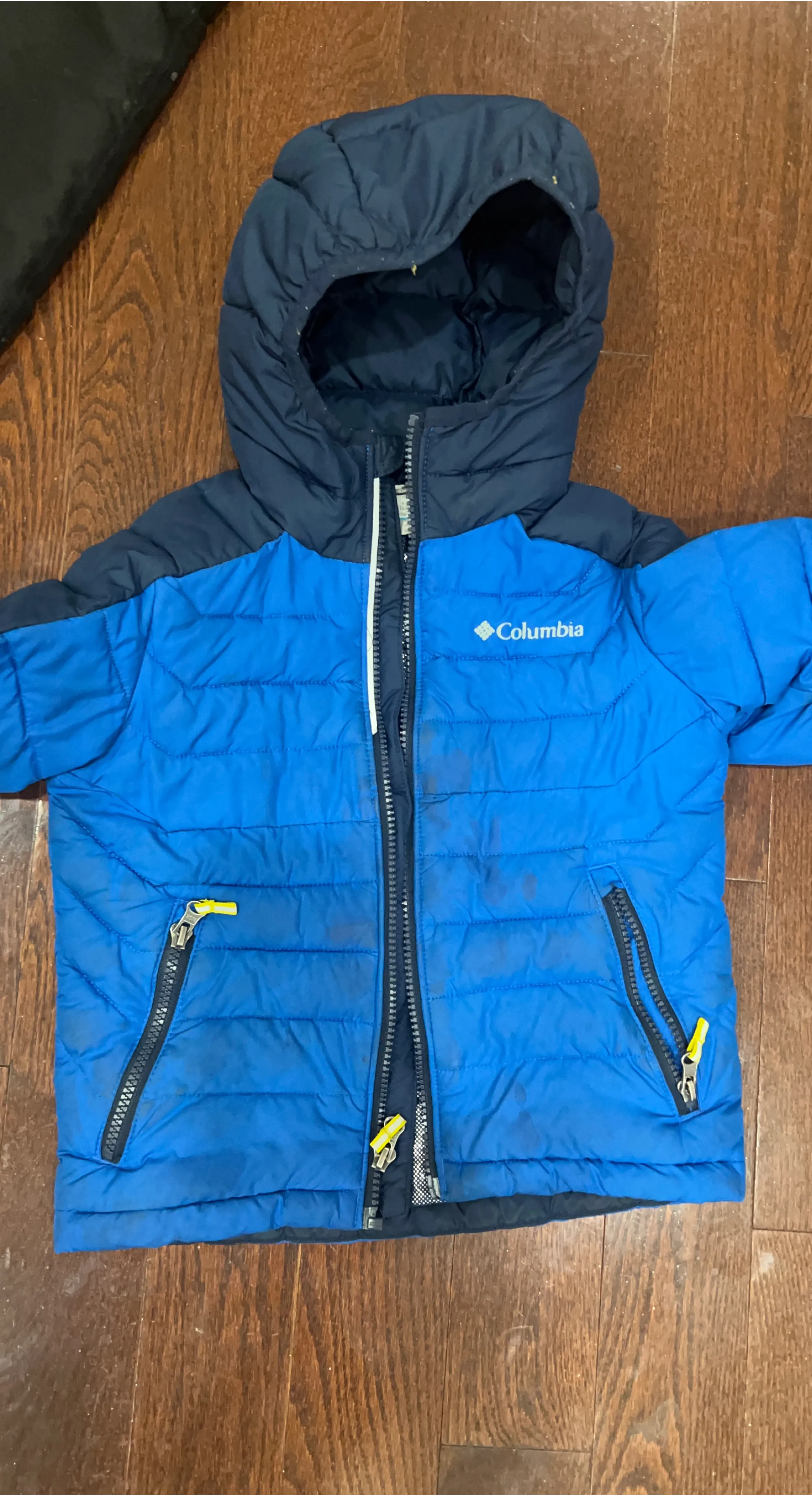 A blue Columbia puffer jacket, perfect for keeping your little one warm during the colder months! There are some signs of wear, but it's still in good condition and ready for more adventures