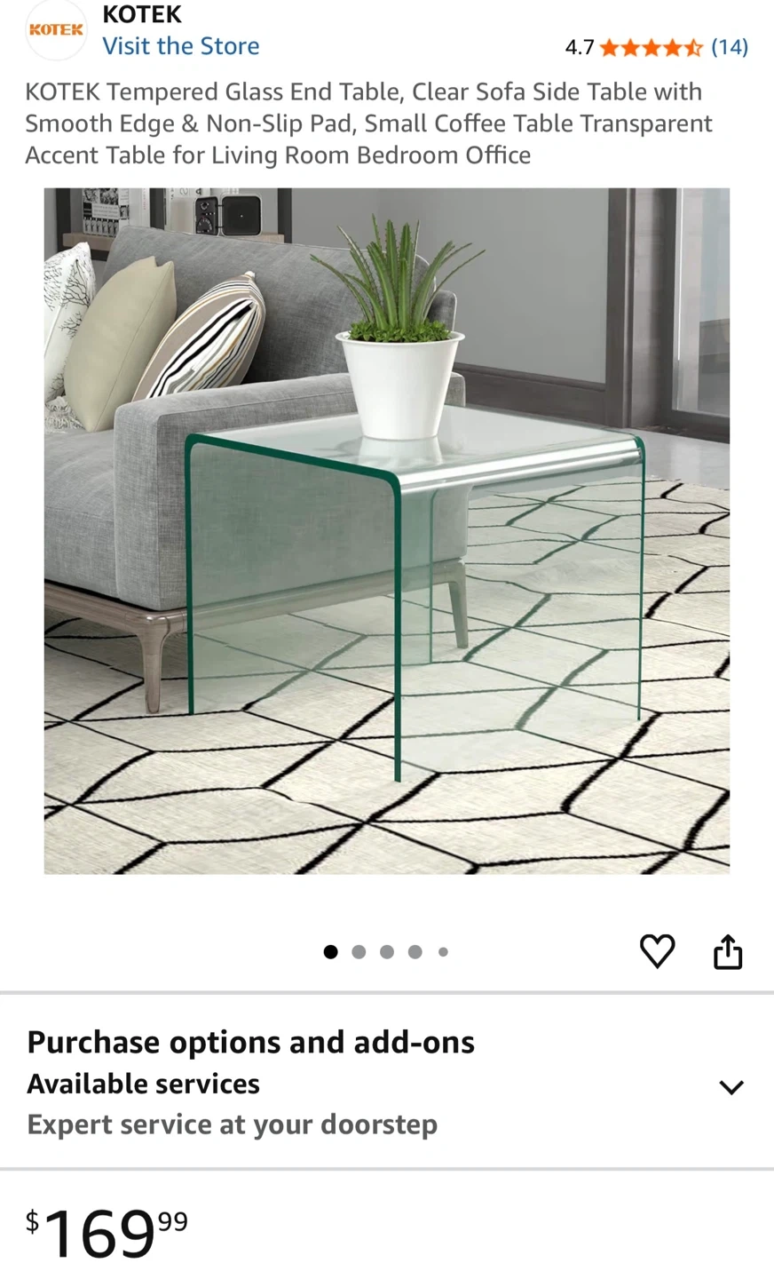 KOTEK Tempered Glass Side Table