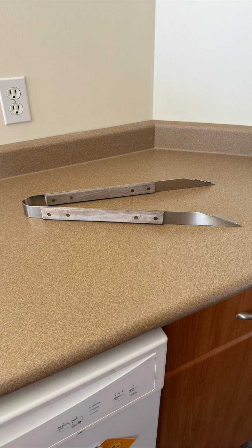 These tongs are made from durable stainless steel with a classic wooden handle design. The serrated edges provide a good grip for lifting and turning food. Great for BBQs and kitchen use!
