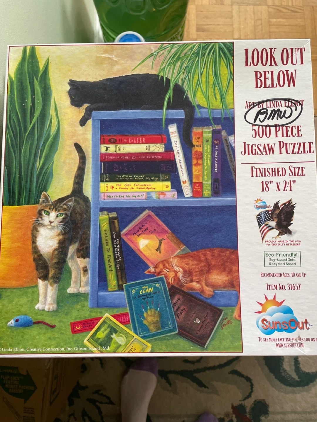 This SunSout "Look Out Below" jigsaw puzzle features artwork by Linda Elliots and is 500 pieces. It's finished size is 18" x 24". This puzzle is recommended for ages 10 and up. Pick up only after 6pm