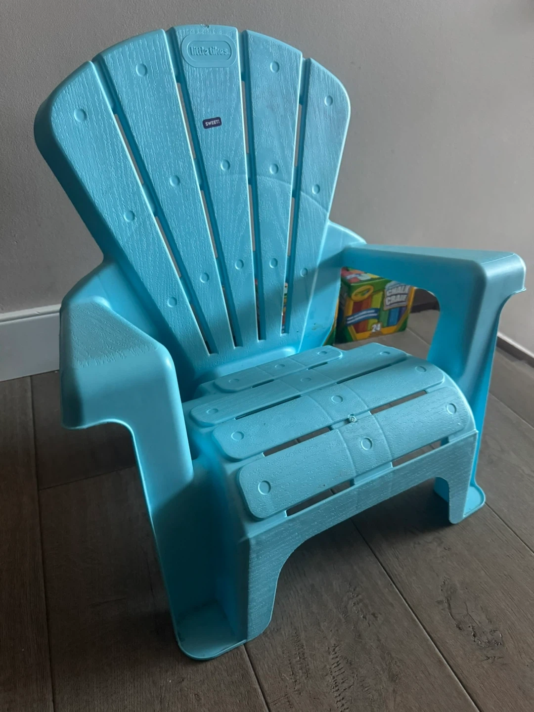 This is a Little Tikes kids chair featuring the PJ Masks characters. It's made of durable plastic, perfect for indoor or outdoor use. This chair is a fun size for toddlers and young children!