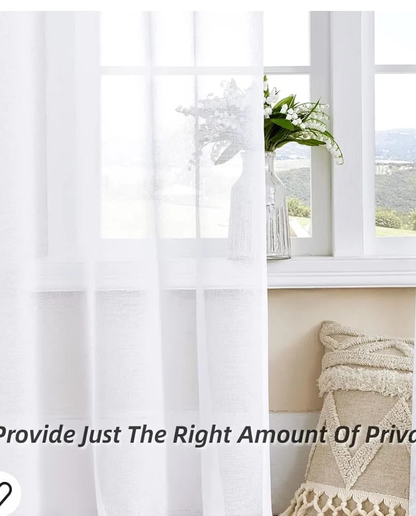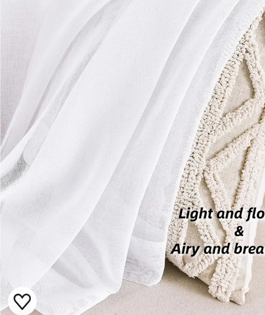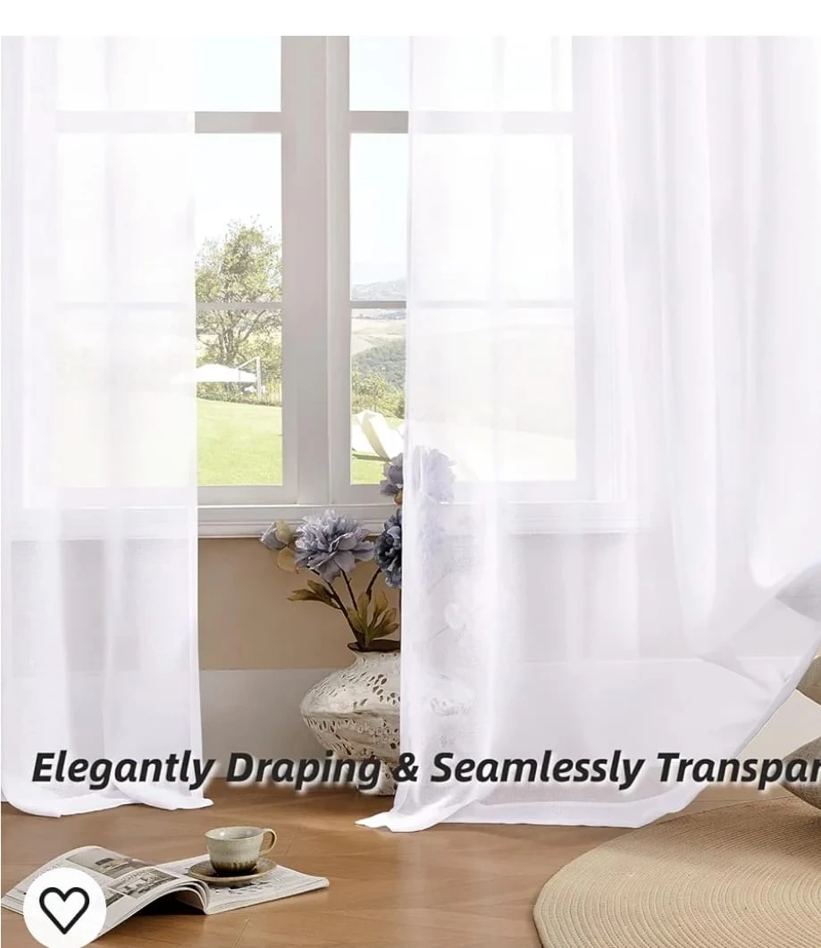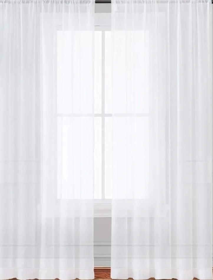 White sheer voile curtains. Light and flowy. Airy and breathable. Provide just the right amount of privacy. Elegantly draping and seamlessly transparent.