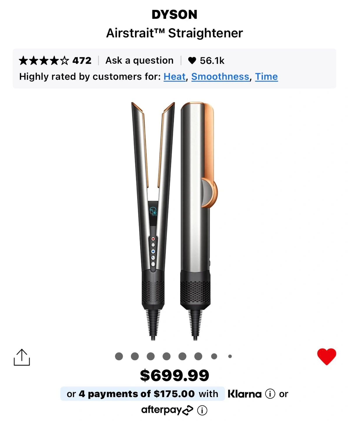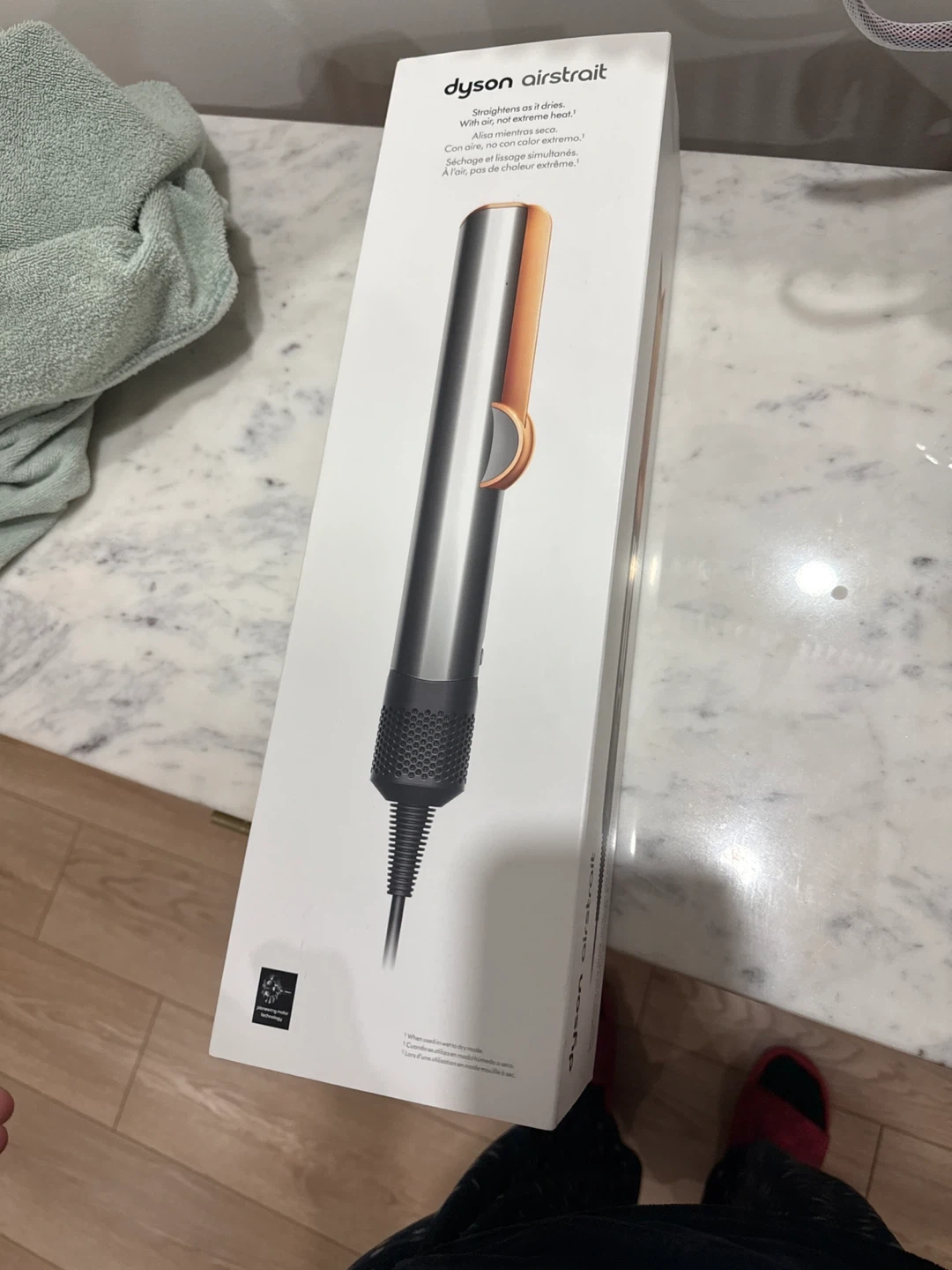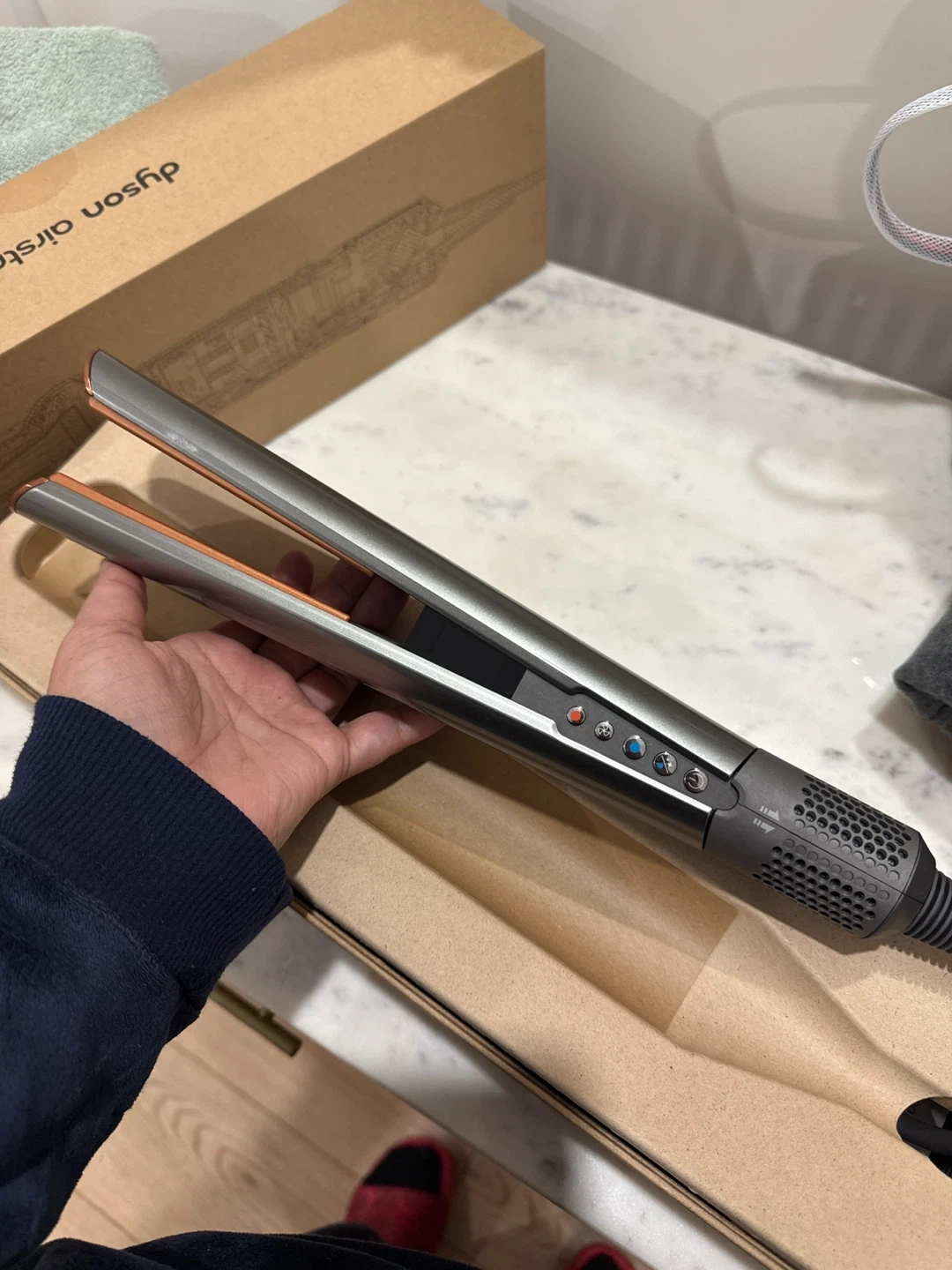 The Dyson Airstrait straightener uses high-pressure airflow to straighten Hair as it dries.