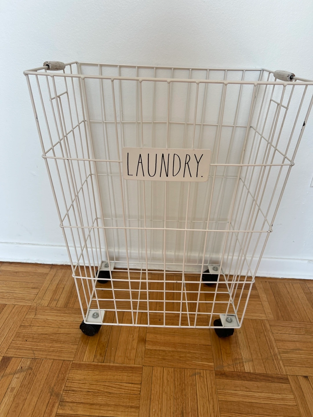 Selling Metal laundry/storage basket. It's in great shape and features a handy set of wheels for easy moving around the house. Perfect for keeping your laundry organized!