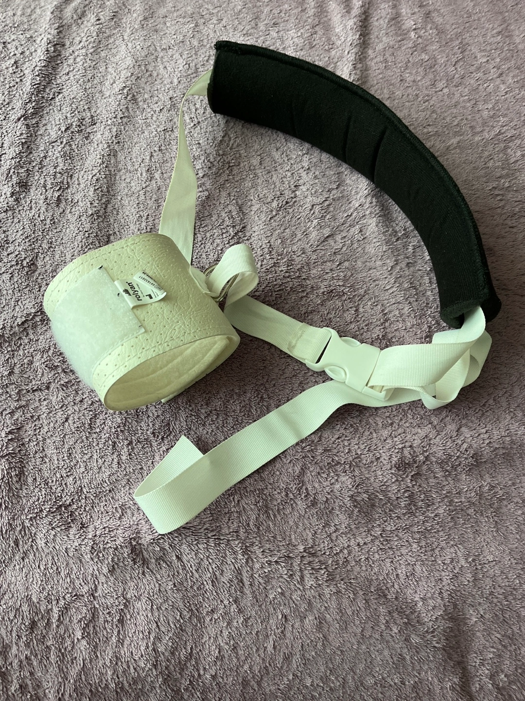 Selling a Rolyan arm sling. It's white with a black padded shoulder strap. Great for supporting your arm after an injury
