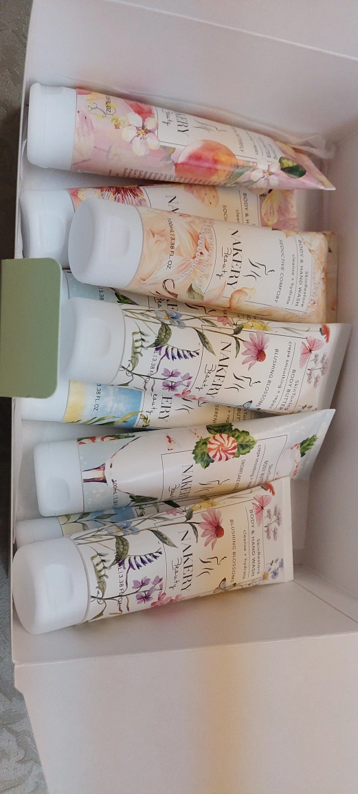 Nakery Beauty Body & Hand Wash Set with various floral scents. These can be sold separately. Each would cost $6.00. Each tube contains 100ml / 3.38 fl oz. Comes in the original box! Brand New. Never used. It would make a nice gift for the holidays.