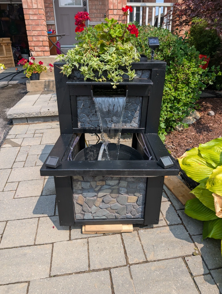 This is a lovely outdoor water fountain, perfect for adding a relaxing touch to your garden or patio! It features a built-in planter on top, so you can easily add some greenery and flowers. The fountain is in great shape and ready to bring some zen to your outdoor space