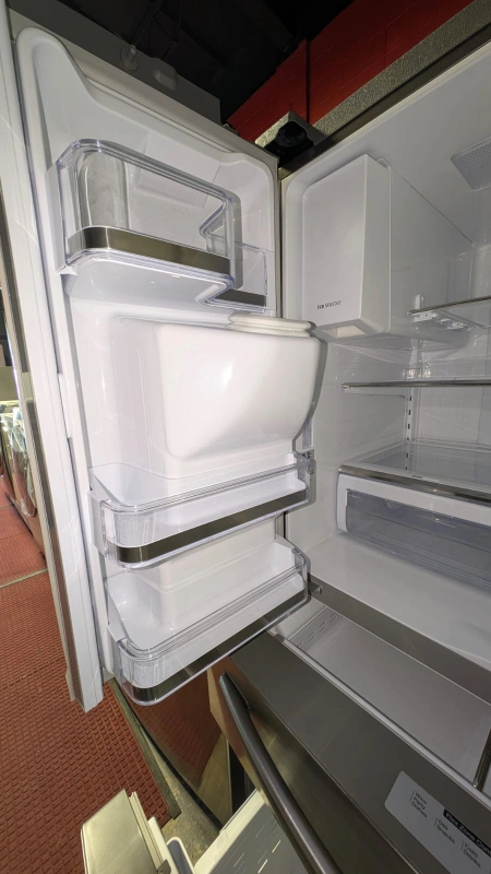 Selling a Samsung French Door Refrigerator, model RF28HMEDBSR. It's a free-standing installation unit, made in Korea. The dimensions are approximately 35 3/4" x 29 3/4" x 70".