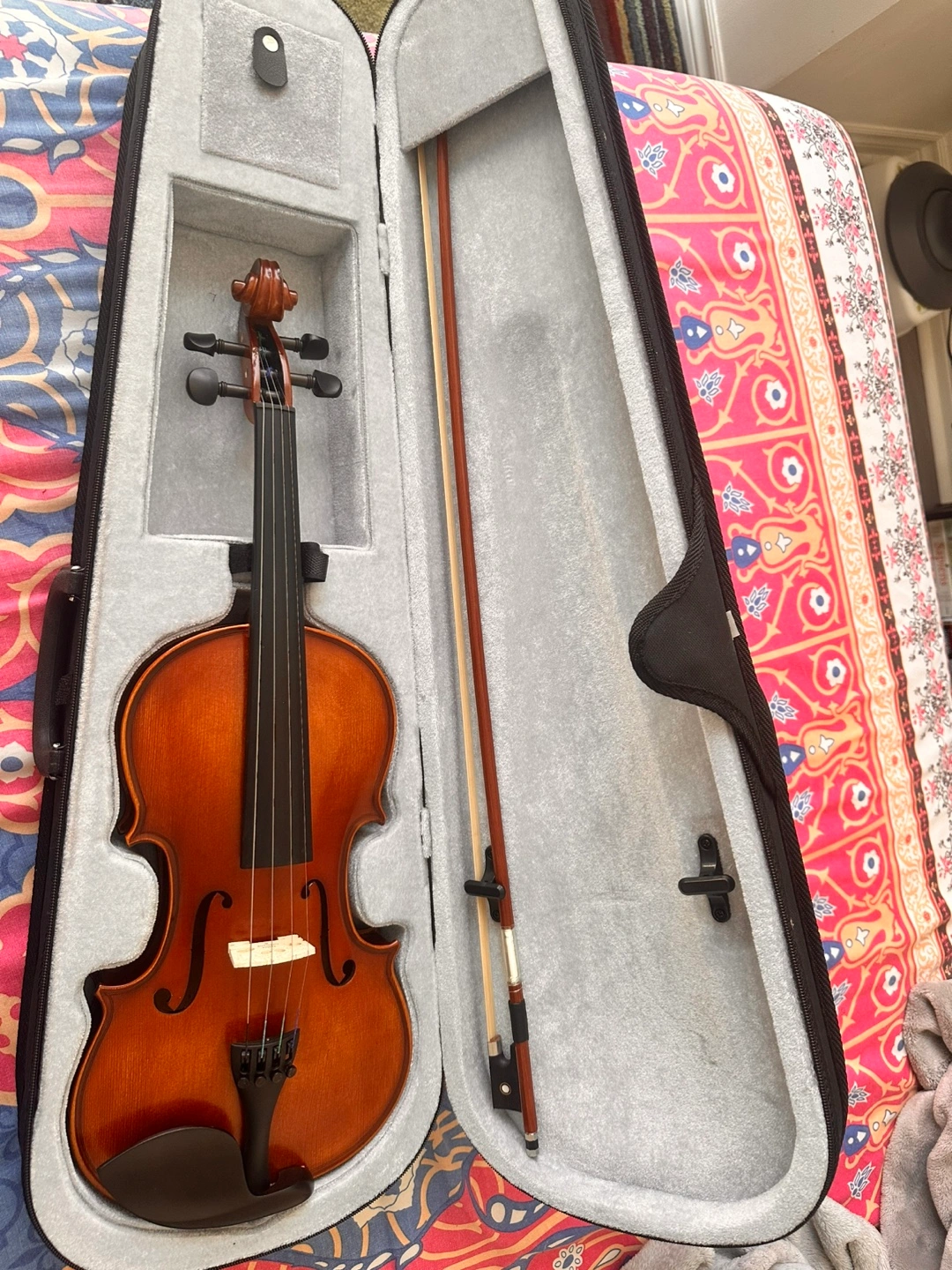 Selling a 4/4 full-size violin, perfect for beginner to intermediate players. Gently used and well cared for β great for students, hobbyists, or anyone starting their violin journey.