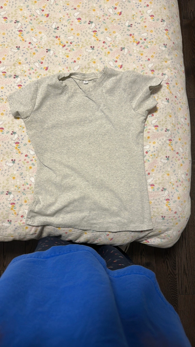 Selling a basic grey t-shirt in size medium! It's in good condition and perfect for everyday wear. A simple and versatile piece to add to your wardrobe