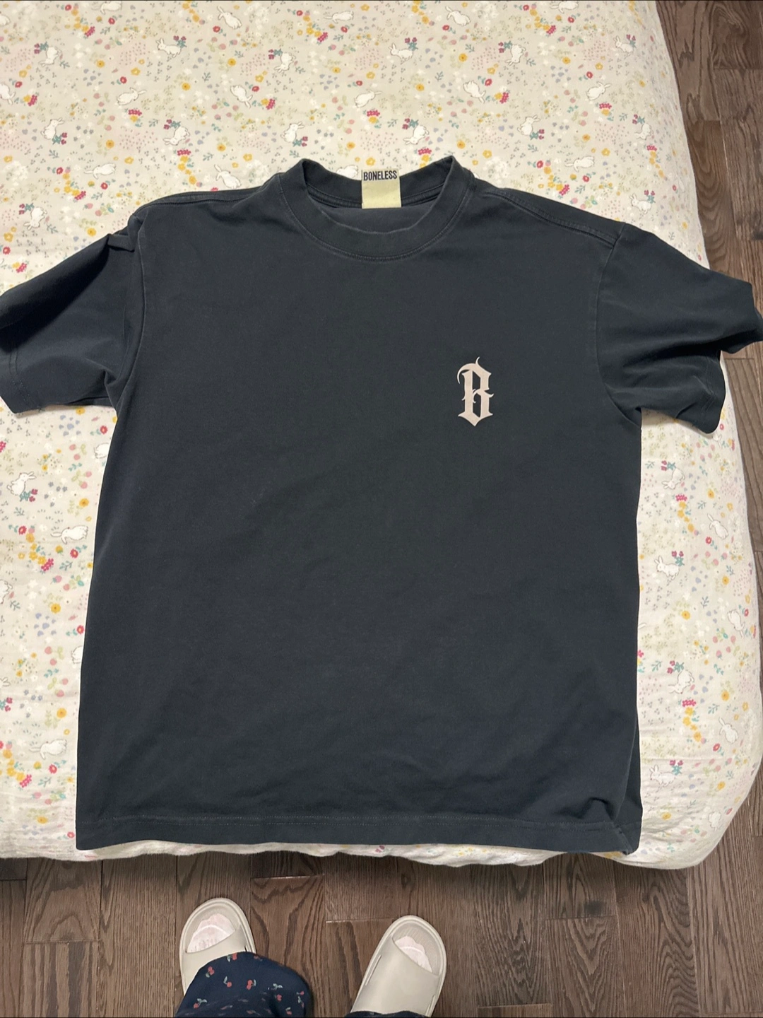 Here's a Boneless black t-shirt! It has a small 'B' logo on the front. It's in great condition and ready for a new home