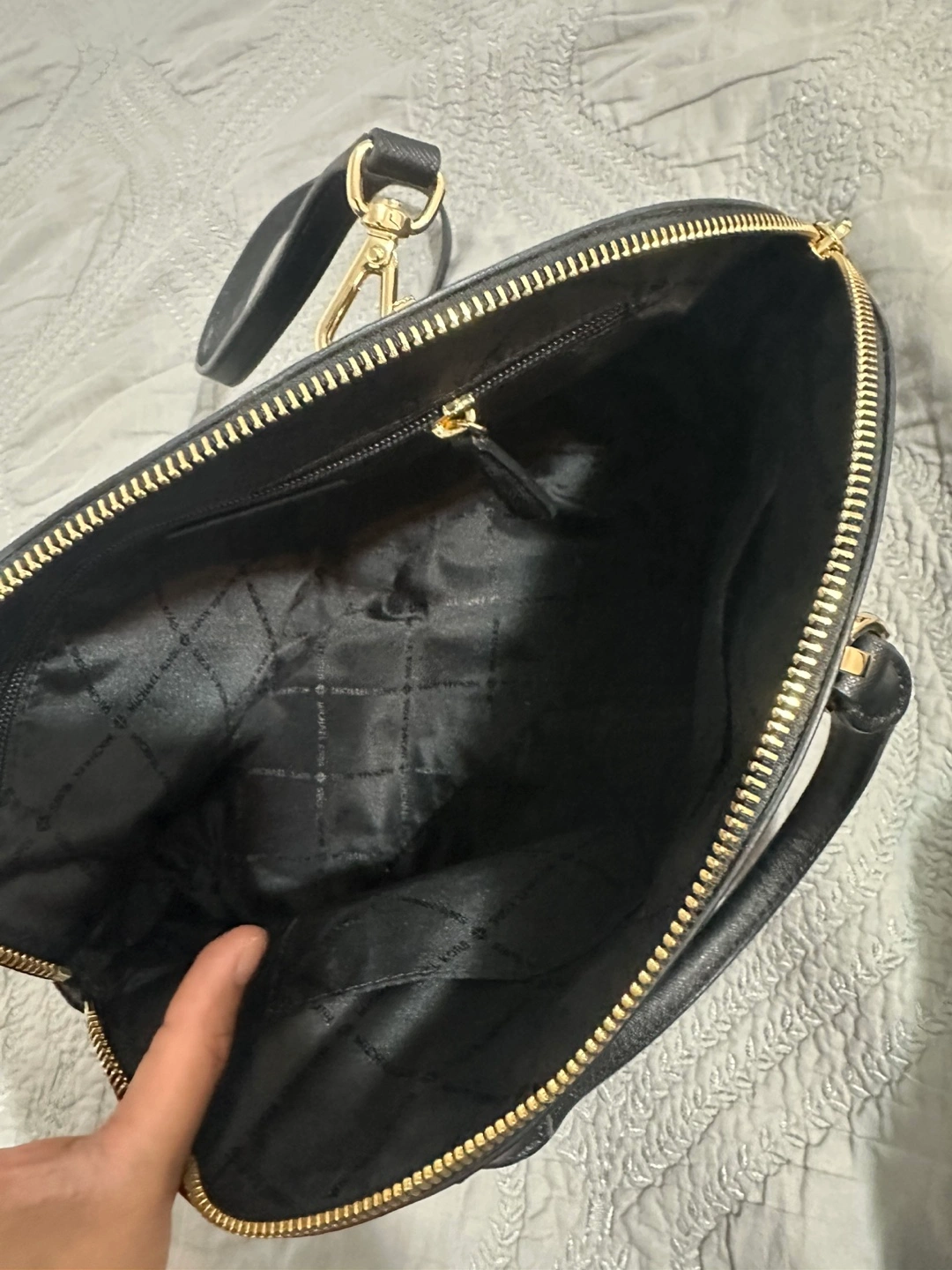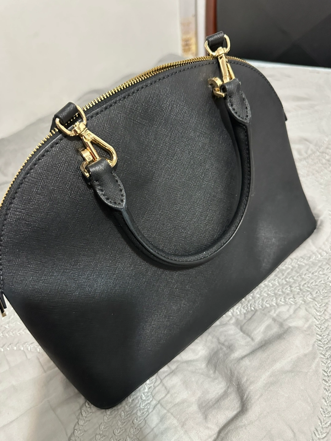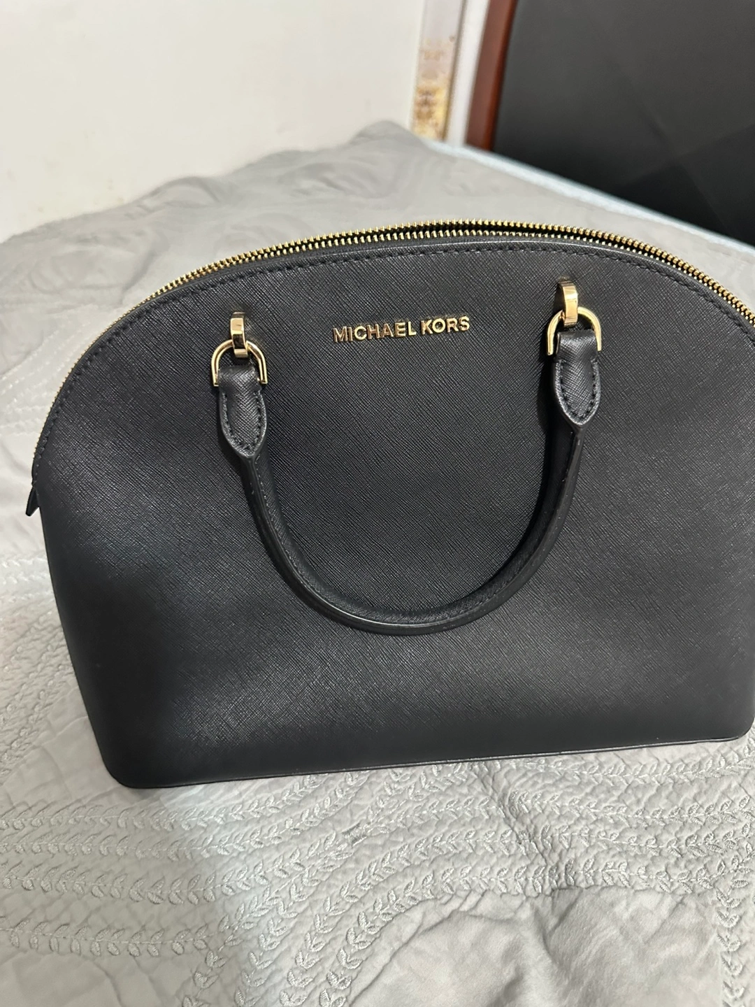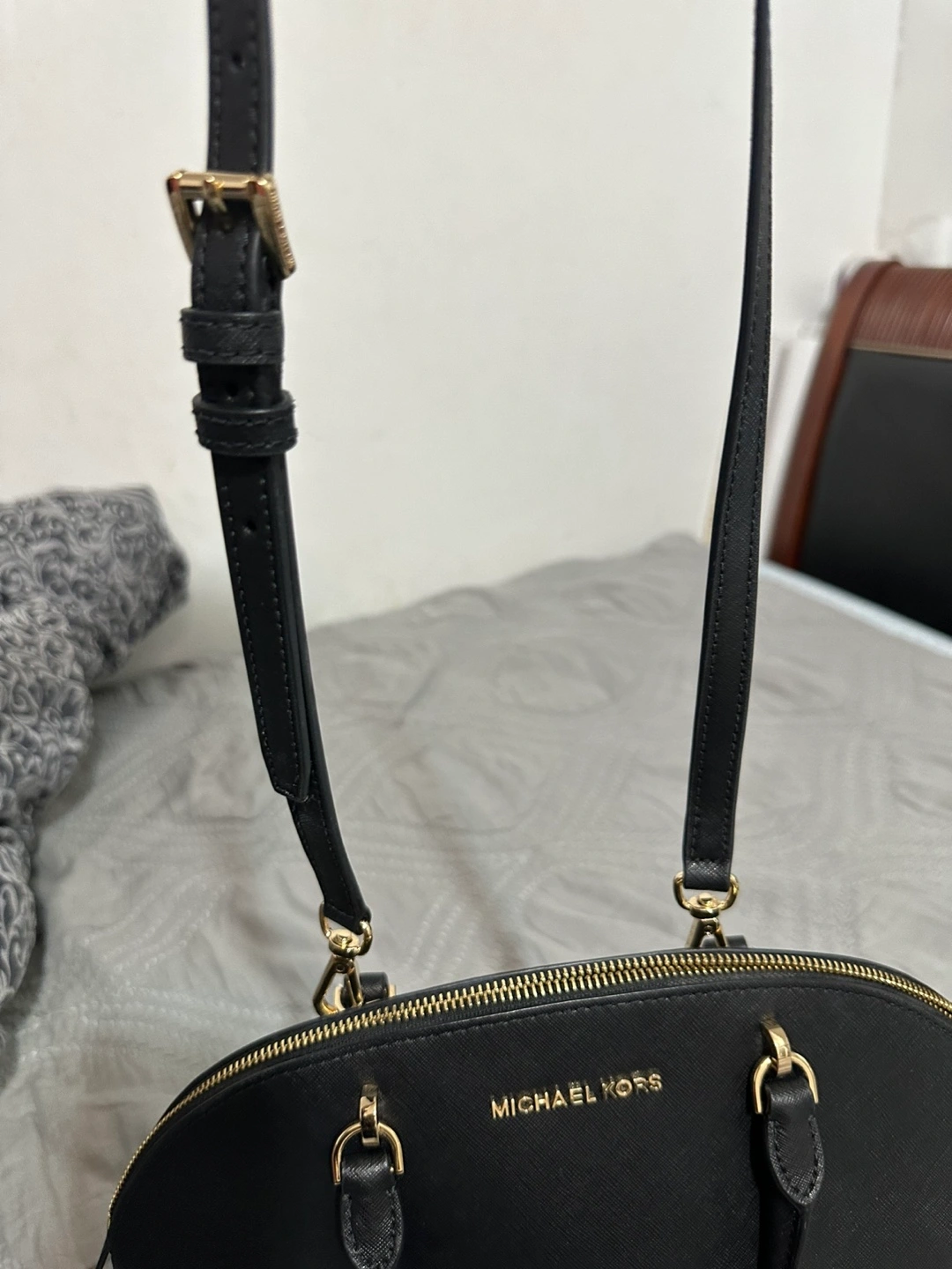 543This is a pre-owned Michael Kors black dome satchel, perfect for everyday use. It's in good condition and comes with an optional shoulder strap. Features: * Colour: Black * Style: Satchel/Shoulder Bag * Brand: Michael Kors Don't be a wallflower, make me an offer. If the ad is up, it's available!