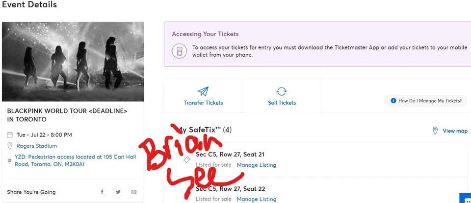 Selling tickets for the BLACKPINK World Tour in Toronto! The concert is on Tuesday, July 22 at 8:00 PM at Rogers Stadium.
