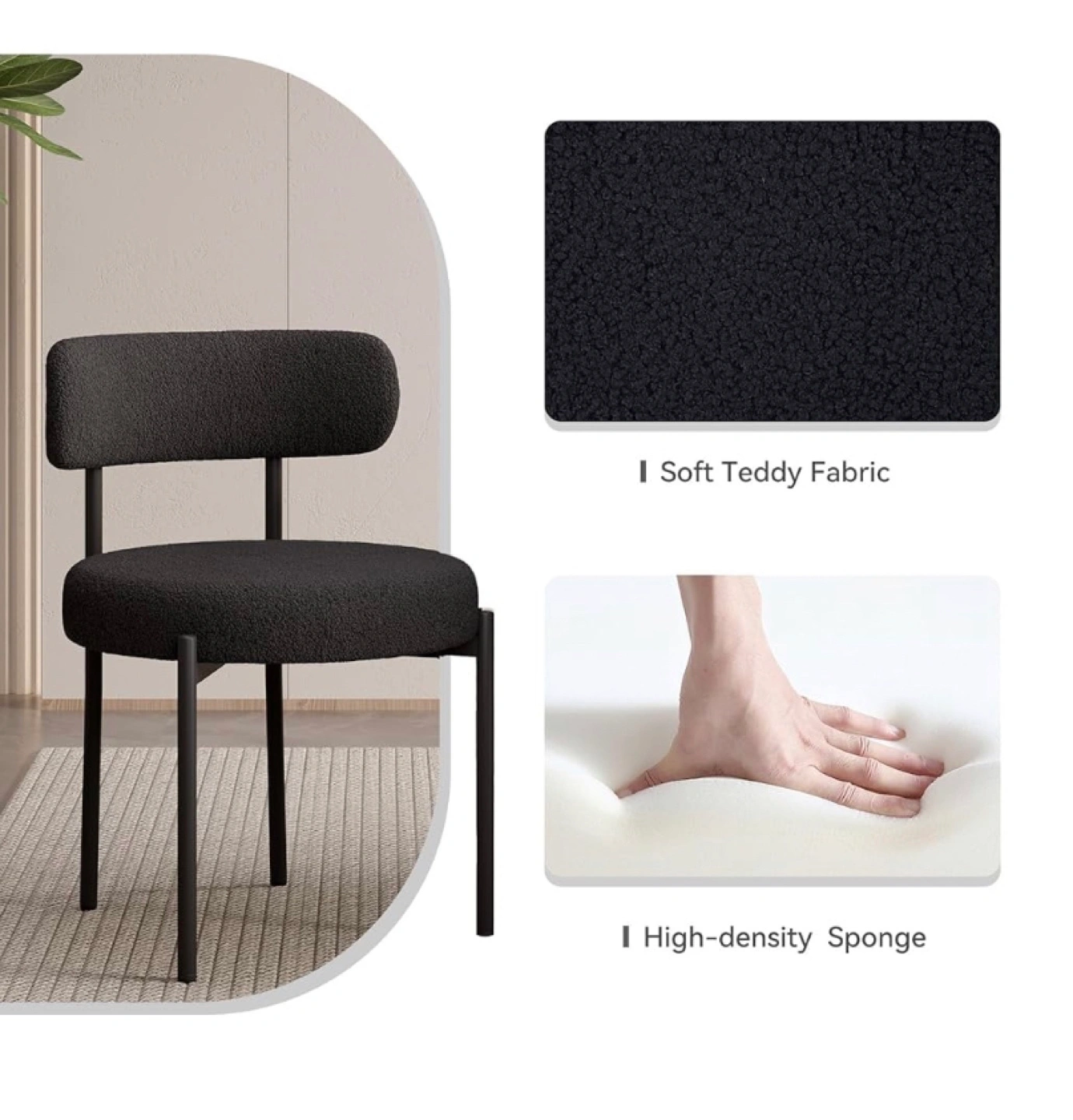 Selling a stylish dining chair featuring soft teddy fabric and a high-density sponge for comfortable seating