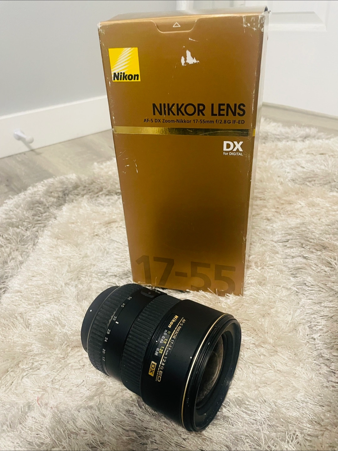Selling a Nikon AF-S DX Nikkor 17-55mm f/2.8G IF-ED lens! It's in great shape and comes with the original box. Perfect for any Nikon DX camera