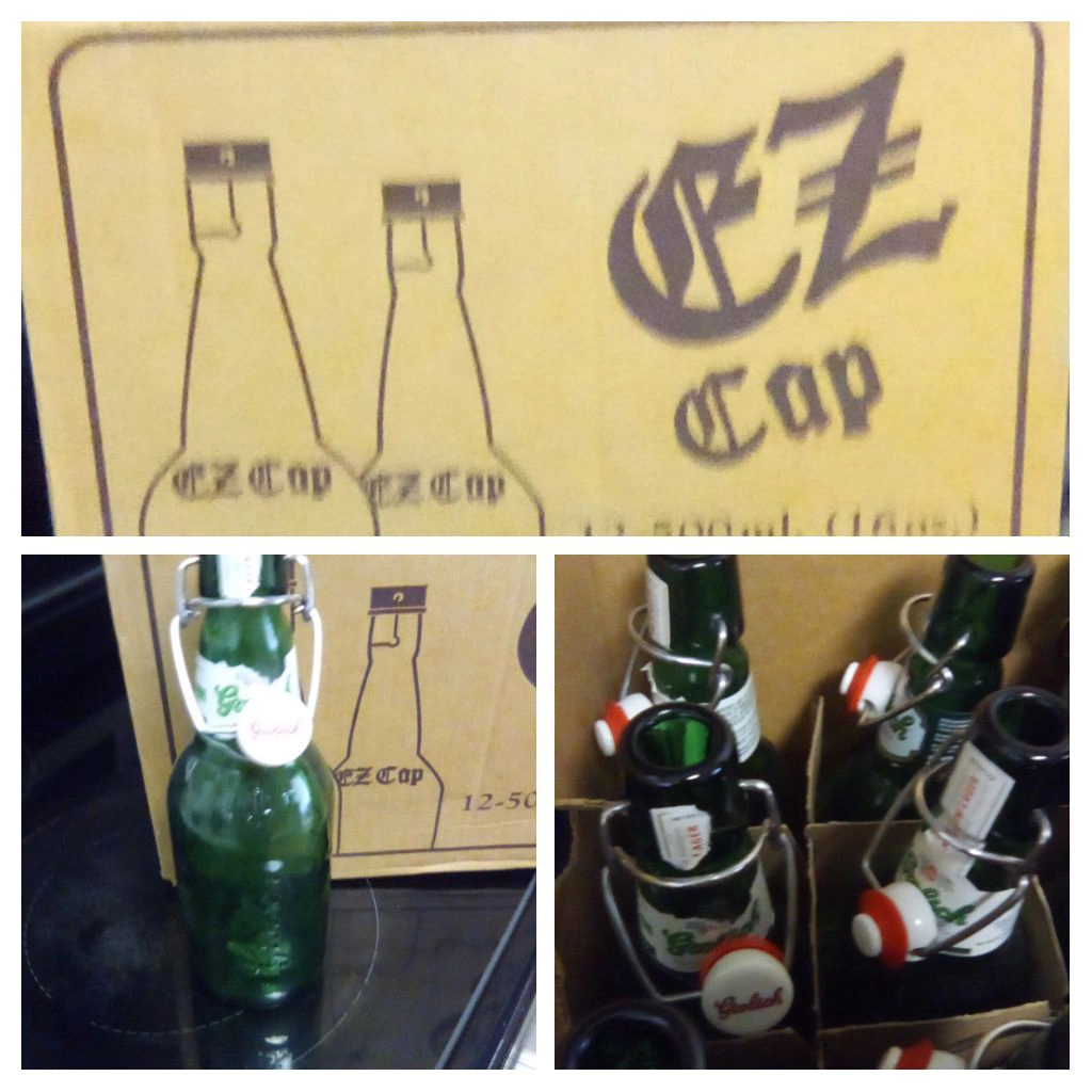 Case of 12 EZ Cap bottles, each with a 500ml (16oz) capacity, complete with swing-top closures. These bottles are in used condition, perfect for homebrewing or storing your favourite beverages. These have been sitting in storage. Time to free up some space. They are ready to be put to good use.