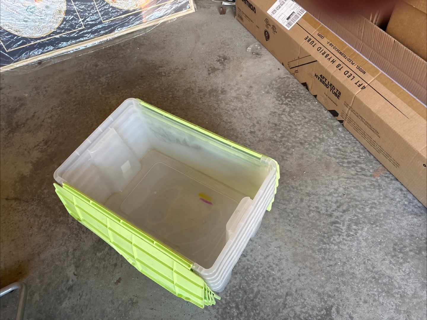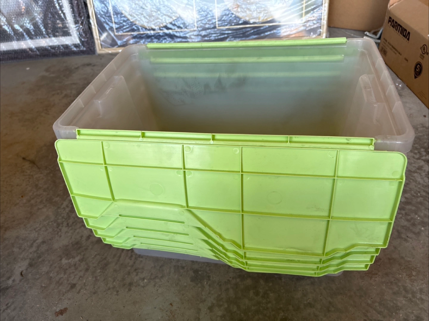 Selling a green storage container bin. It's in great condition and ready to help you organize your space. Perfect for storing various items around the house!