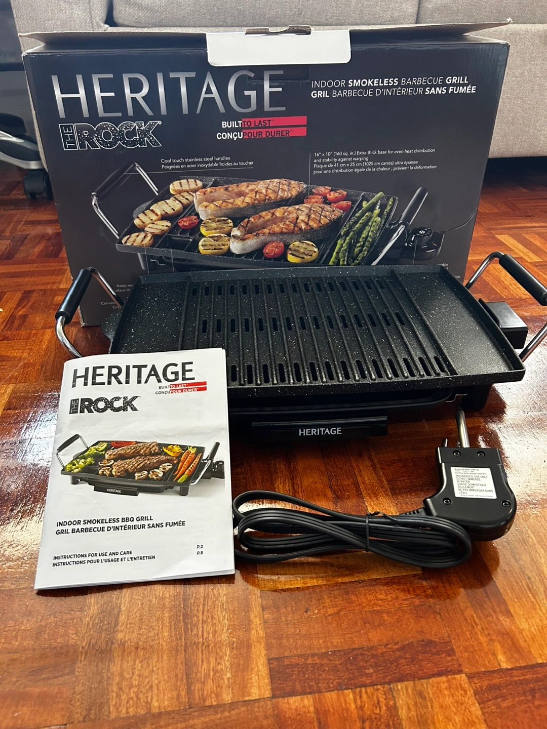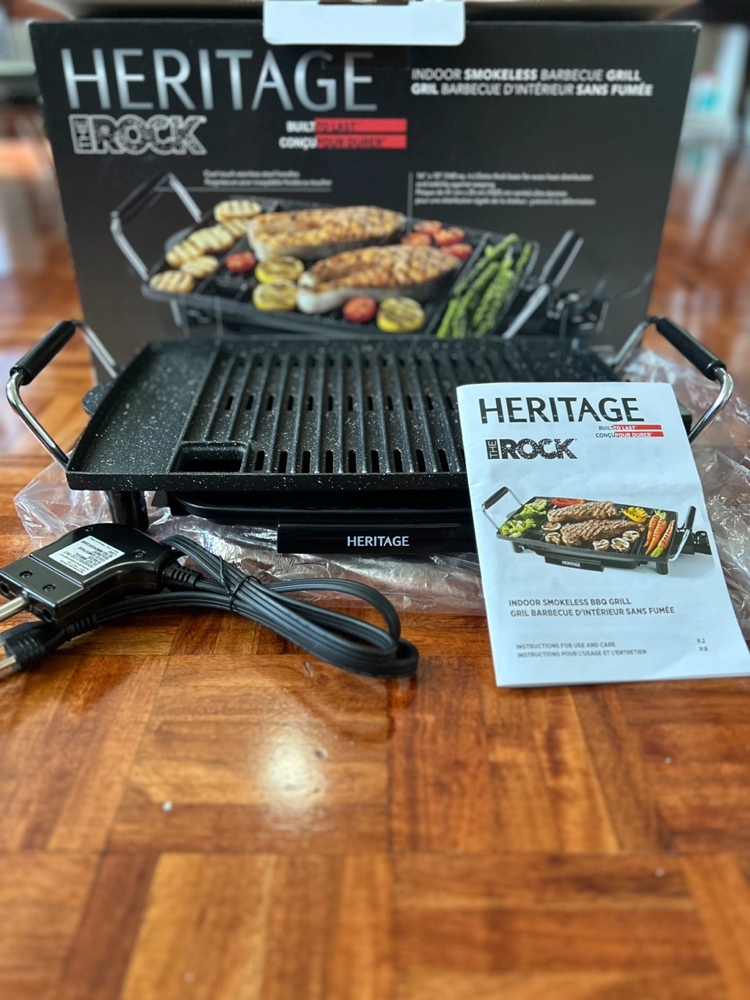 Selling a Heritage The Rock indoor smokeless BBQ grill. It's in excellent condition and comes with the original box and instructions! This grill is perfect for indoor use and helps you enjoy BBQ flavour without the smoke. Get ready to enjoy delicious grilled meals year-round!