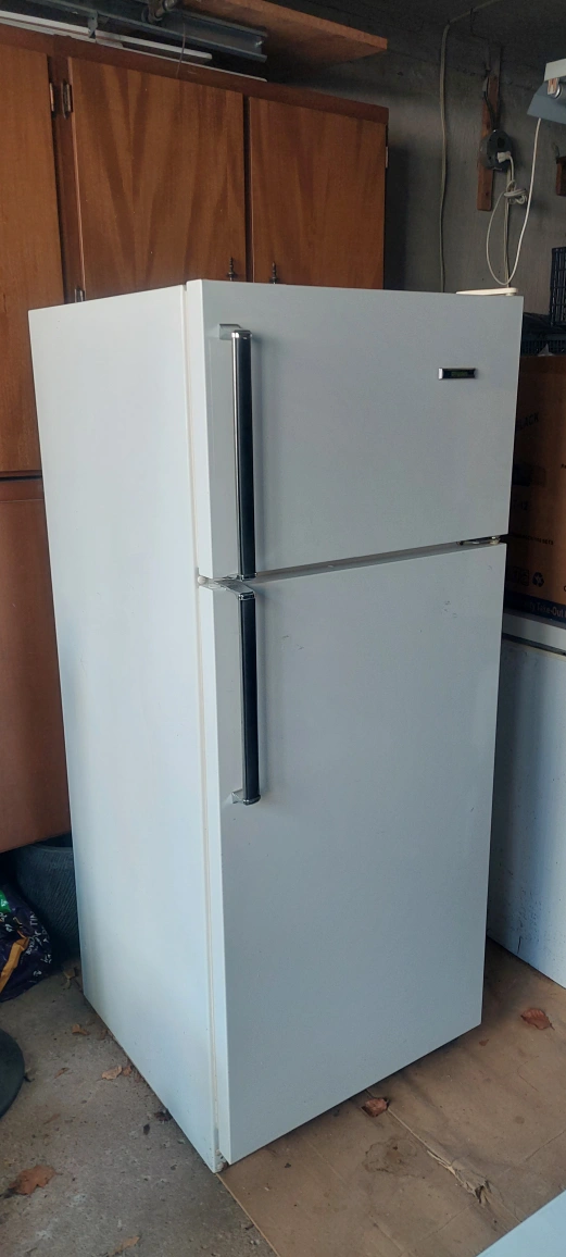 Selling a white top freezer refrigerator. It's in good working condition and ready for a new home! Great for a small apartment or as a second fridge in the garage