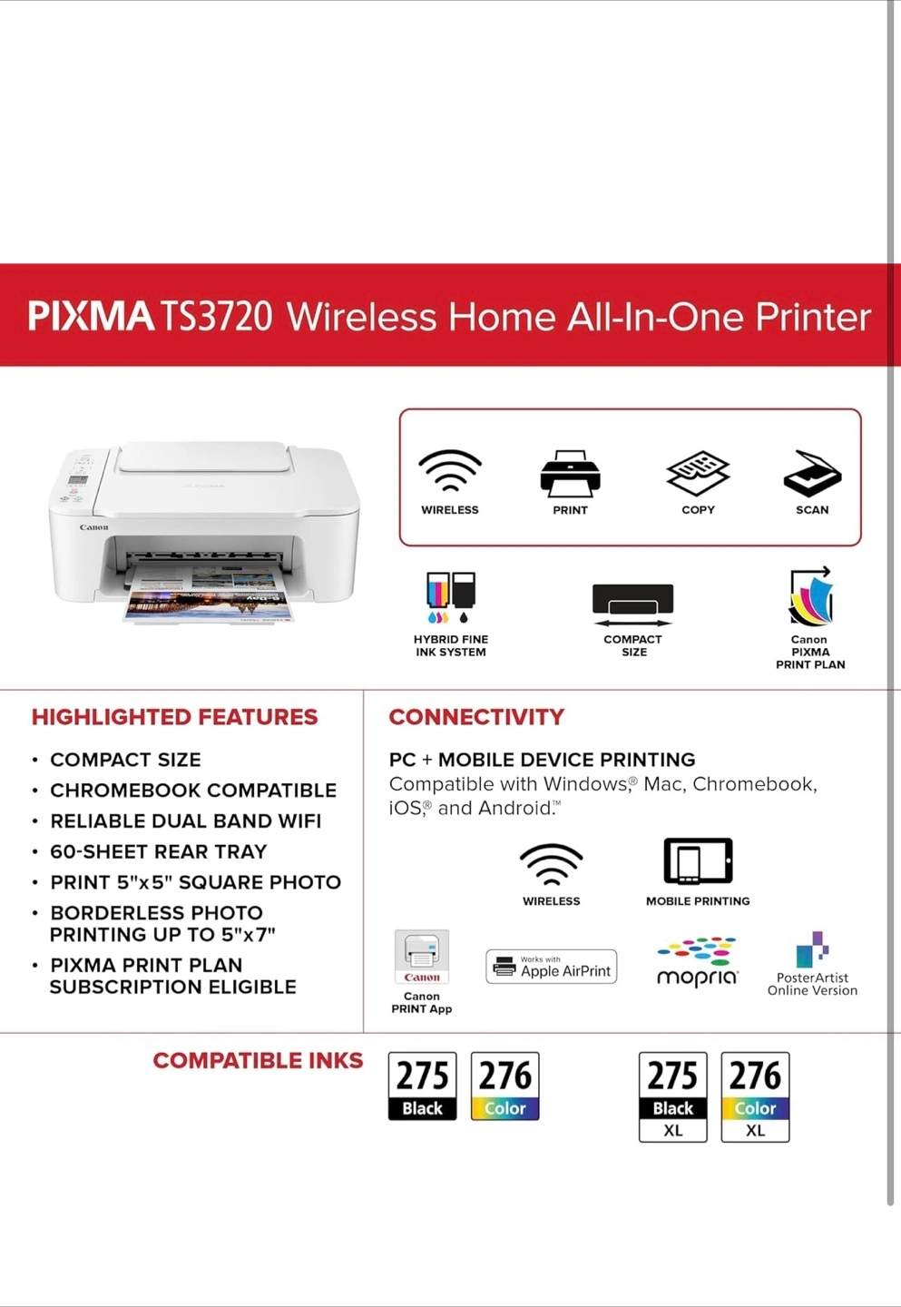 Selling a brand new Canon PIXMA TS3720 printer in white! It's still in its original box and ready for a new home. This printer is perfect for printing, copying, and scanning. It features a 60-sheet rear paper tray and can print borderless photos up to 5"x7". It's also compatible with Chromebook devices and connects wirelessly or via USB cable. Willing to deliver if in the GTA area!