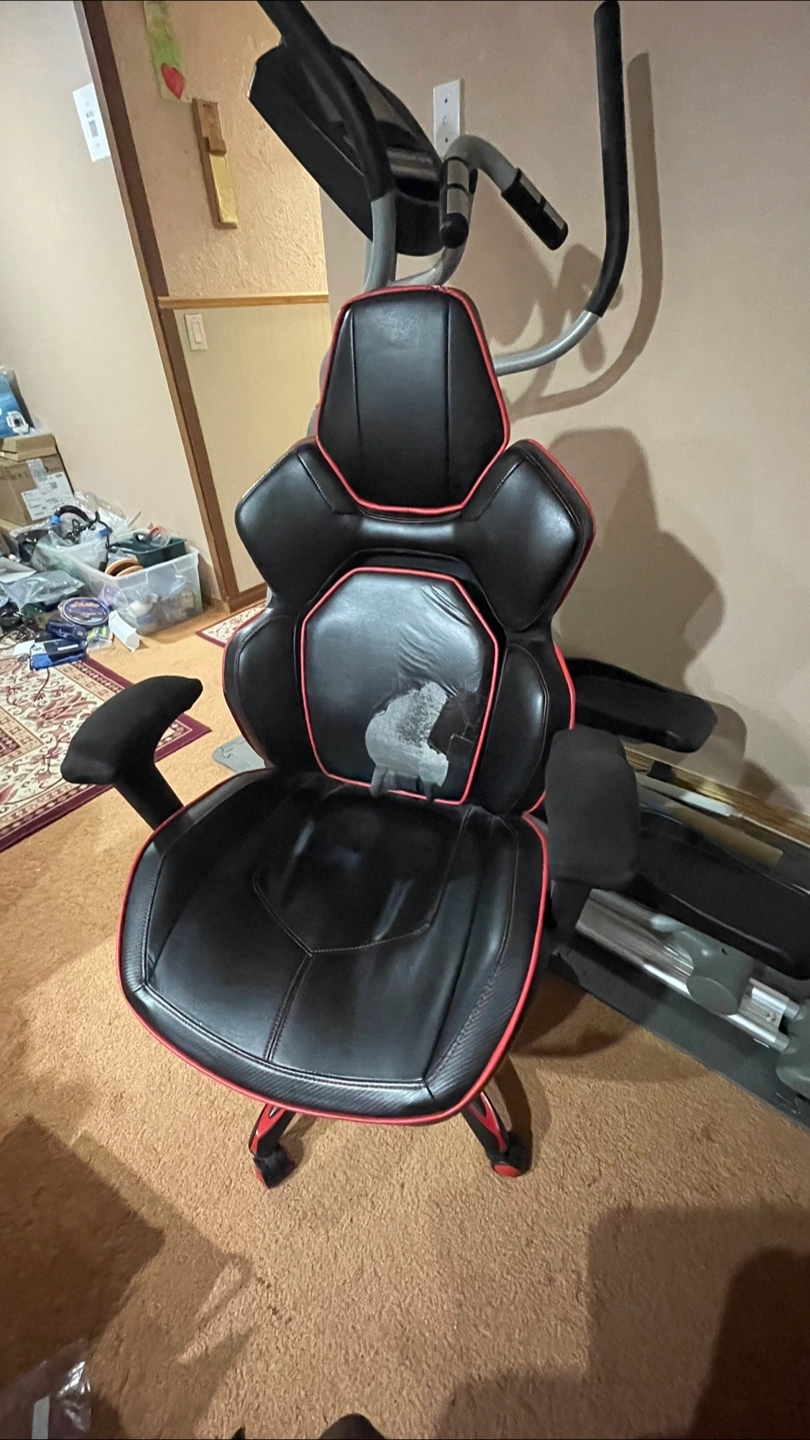 This gaming chair has full padding, adjustable armrests, and a flexible backrest — great for long hours of use. A few cosmetic flaws, but still very functional and comfy.