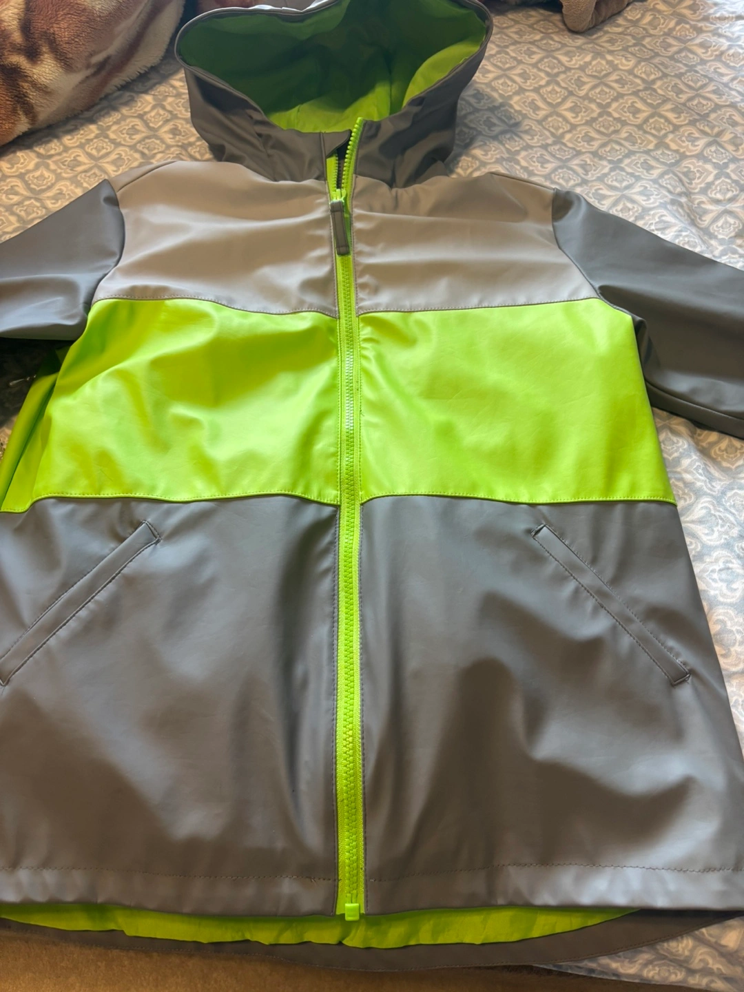 Selling a gently used Andy & Evan kids' 3-in-1 jacket! It's a size L (10/12) and features a grey and neon green colour scheme. The jacket includes a removable fleece vest, making it perfect for layering and different weather conditions