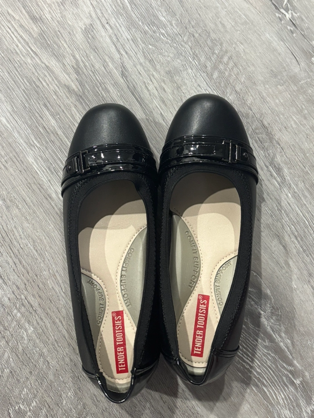 170Tender Tootsies ballet flats in size 6! They're black and feature a comfy insole for support. Originally bought for $39.99.