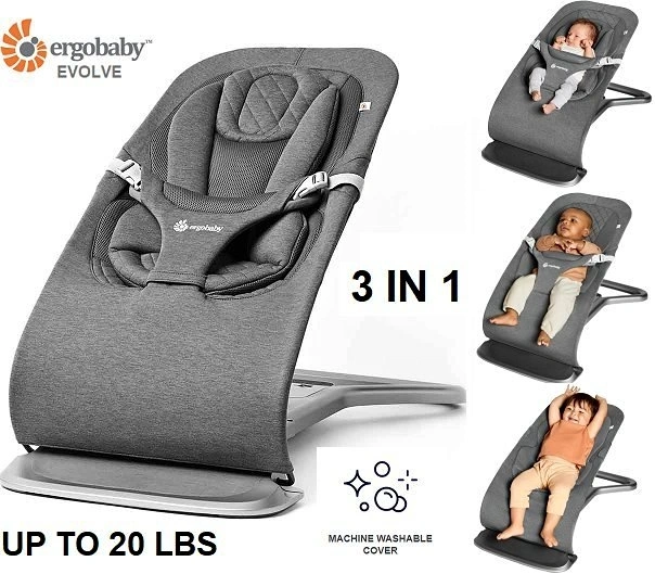 BRAND NEW! never used before. Ergobaby Evolve 3-in-1 Baby Bouncer – Charcoal Grey, excellent condition. Perfect for newborns, infants, and toddlers (up to 20 lbs). Features 3 adjustable height/recline positions with easy step pedal—use as a newborn lounger, infant rocker, or toddler chair. Ergonomic design with supportive newborn insert (head-to-hips support) and secure harness for safe use. Natural self-bouncing motion (no batteries or plugs needed) helps soothe baby. Lightweight, foldable, and portable—great for moving around the home. Soft knit + breathable mesh fabric for comfort. Removable, machine-washable cover for easy cleaning. Stylish, modern design fits any nursery or living space.