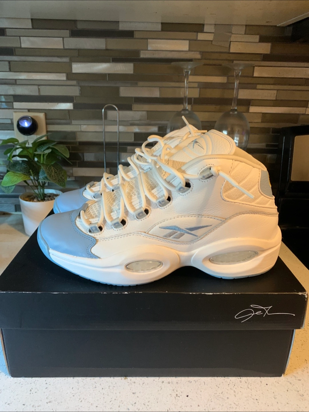 Reebok Question Mid White/Blue Shoes - Size 10.5