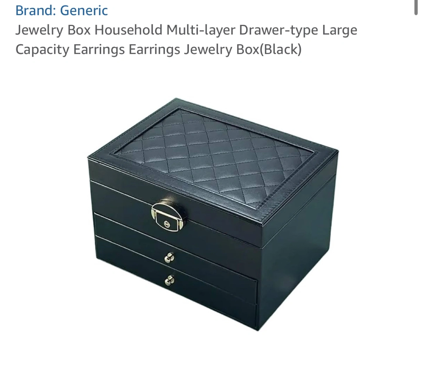 145Colour Black Brand Generic Product Dimensions 25D x 25W x 25H millimeters Target audience adults Occasion Birthday Item weight 50 Grams Spacious multi-layer design with multiple drawers for organized storage of earrings and other jewelry. Stylish and design that complements any home decor, perfect for personal use. Versatile storage solution for various types of jewelry, including earrings, necklaces, and bracelets. Compact size yet large capacity, making it ideal for both travel and home use.