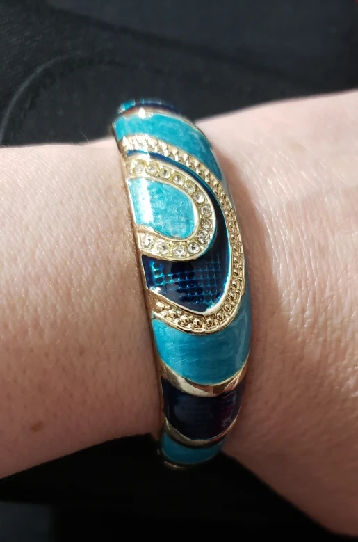 Selling a lovely vintage bangle bracelet! It features a beautiful combination of blue and gold tones, making it a standout piece. It's in great condition and ready to add a touch of elegance to your collection
