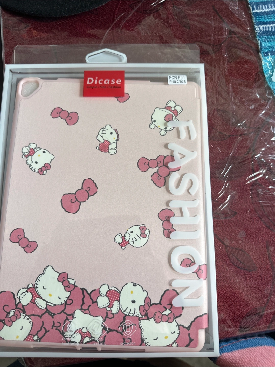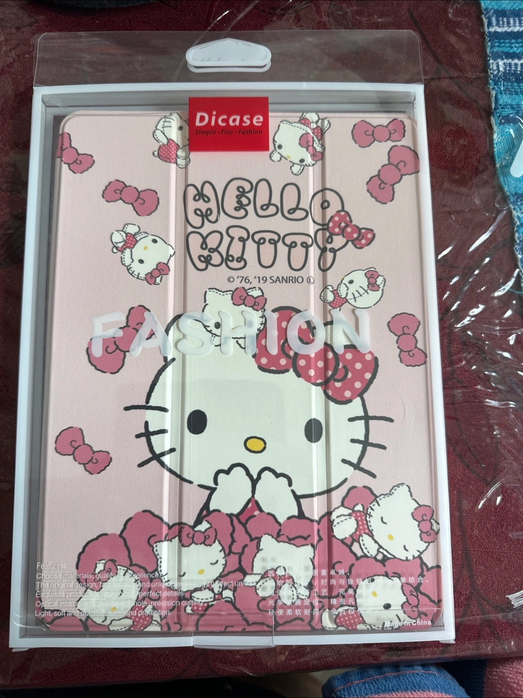 282Selling a brand new Hello Kitty iPad case by Dicase! It's super cute and still in its original packaging. The case features a charming Hello Kitty design with bows and 'Fashion' lettering. It's light, soft, and provides excellent protection for your iPad
