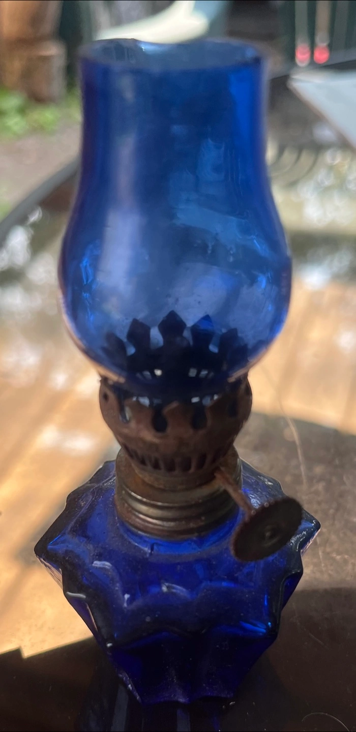 Buy & SellMiniature Blue Glass Oil LampMiniature Blue Glass Oil Lamp$10Selling a cute miniature oil lamp made of blue glass. It's a lovely decorative piece!ConditionGoodDimensions4.5” high WHERE TO MEETMy houseView MapSELLERStephenMurray855 reviews0 chats·0 favorites·31 viewsSEND CHAT TO SELLERHi Stephen! I’m interested in your listing.Hi Stephen! I’m interested in your listing.Get the Karrot app to chatSign In to chat