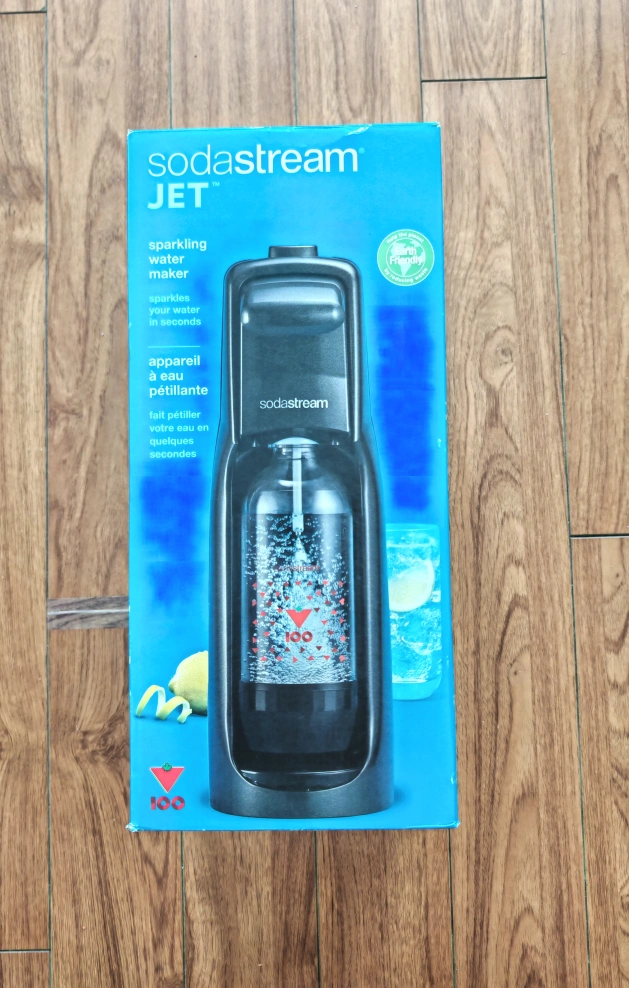 Get ready to make sparkling water at home with this SodaStream Jet! It's in great shape and comes with the original box. No cylinder and bottle included.