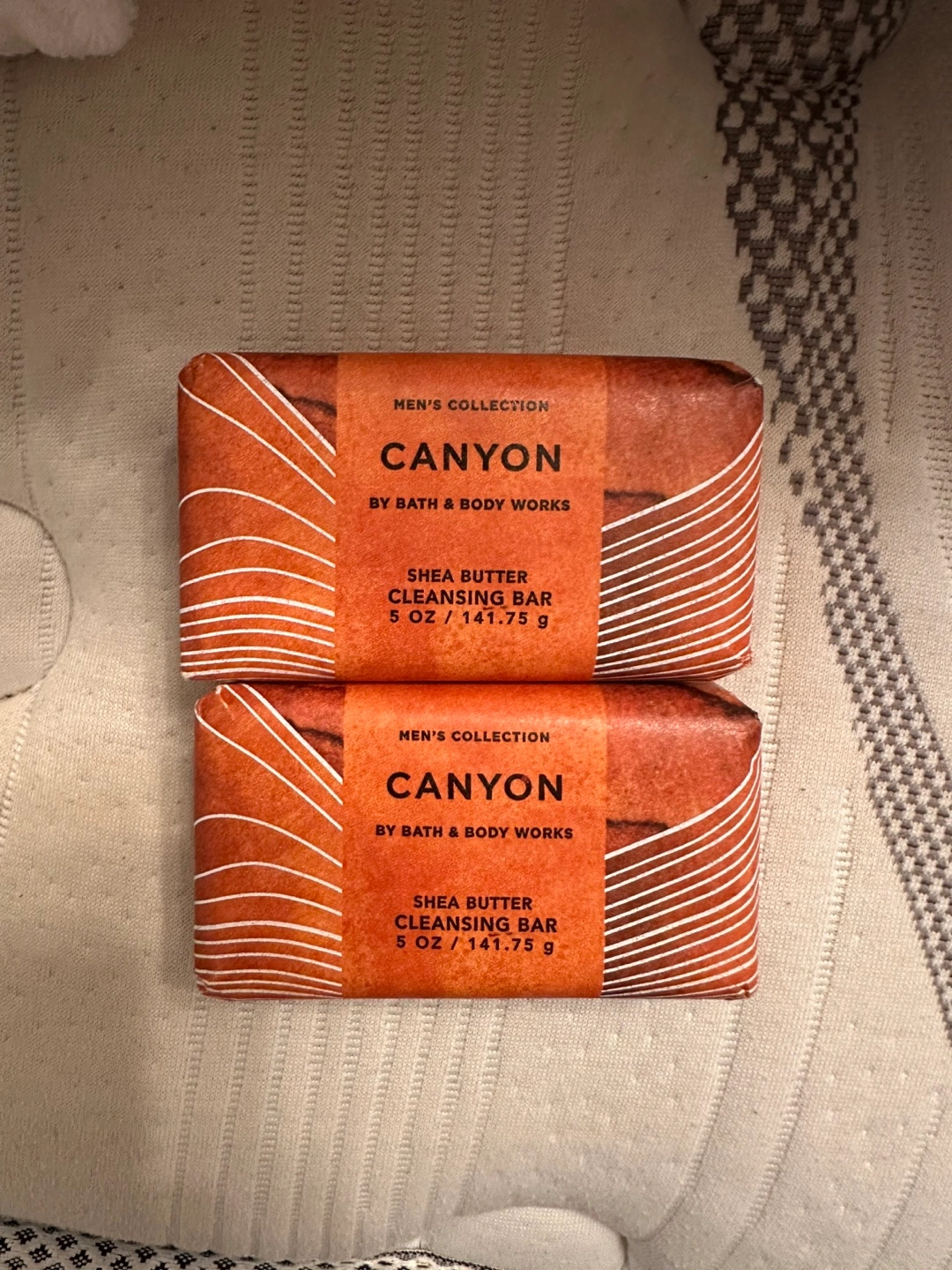 I'm selling two Bath & Body Works Canyon Shea Butter Cleansing Bars from the Men's Collection. Each bar is 5 oz / 141.75 g. They smell great!