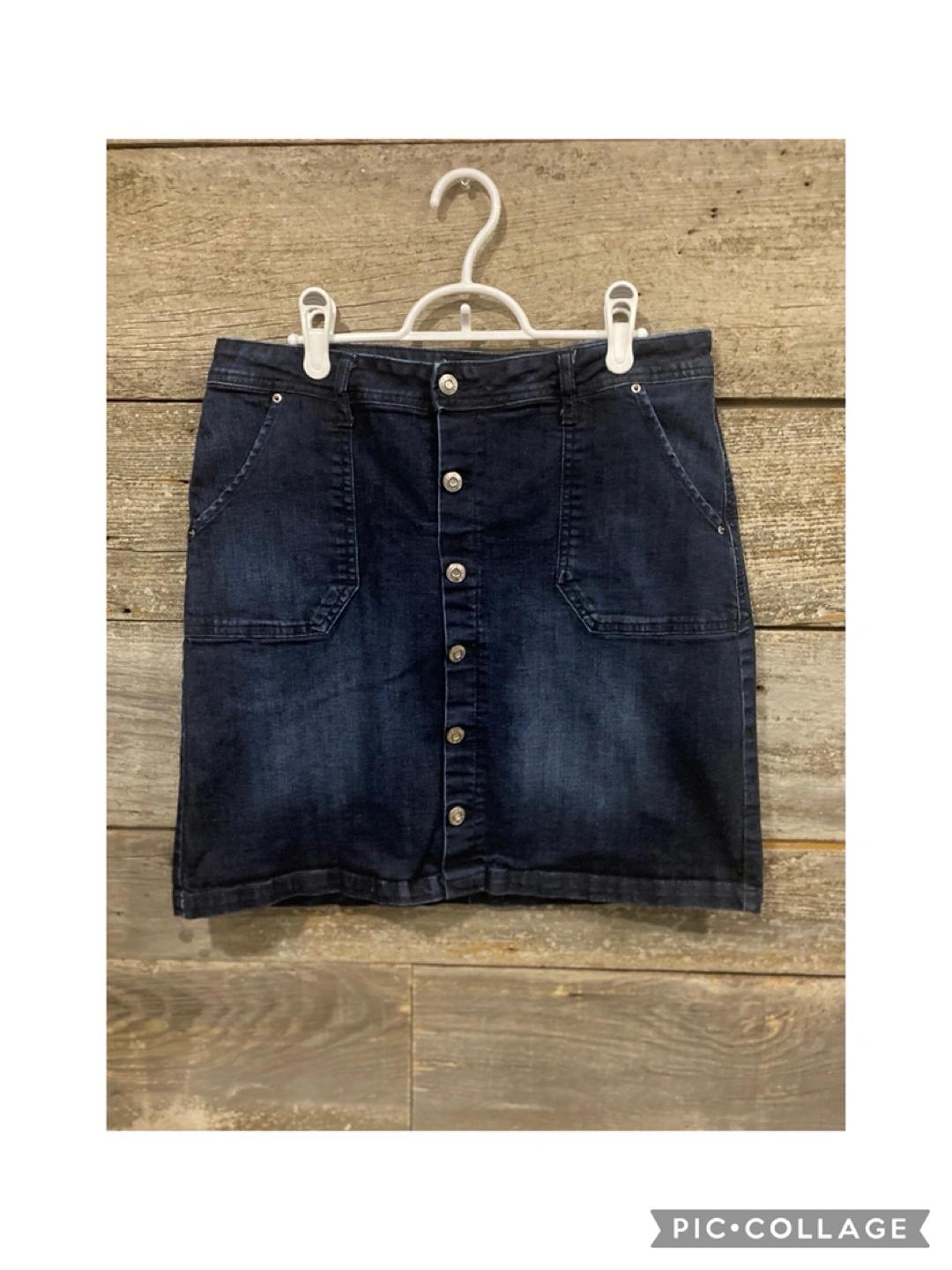 123Kensie Jean Skirt - Size Large • Classic denim skirt with front and back pockets, perfect for a casual, laid-back look. • Made from 99% cotton, 1% spandex, giving it that true denim feel with just a hint of stretch for comfort. • Versatile piece that pairs easily with tees, tanks, or sweaters. • In excellent condition, no rips, stains, or signs of wear. From a pet-free, smoke-free home in Park Ridge. Let me know if you’d like more photos or the length measurement!
