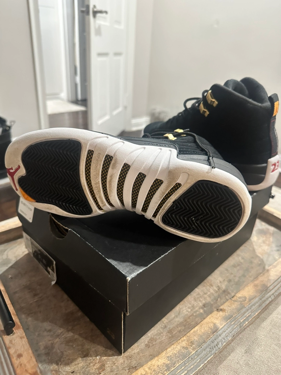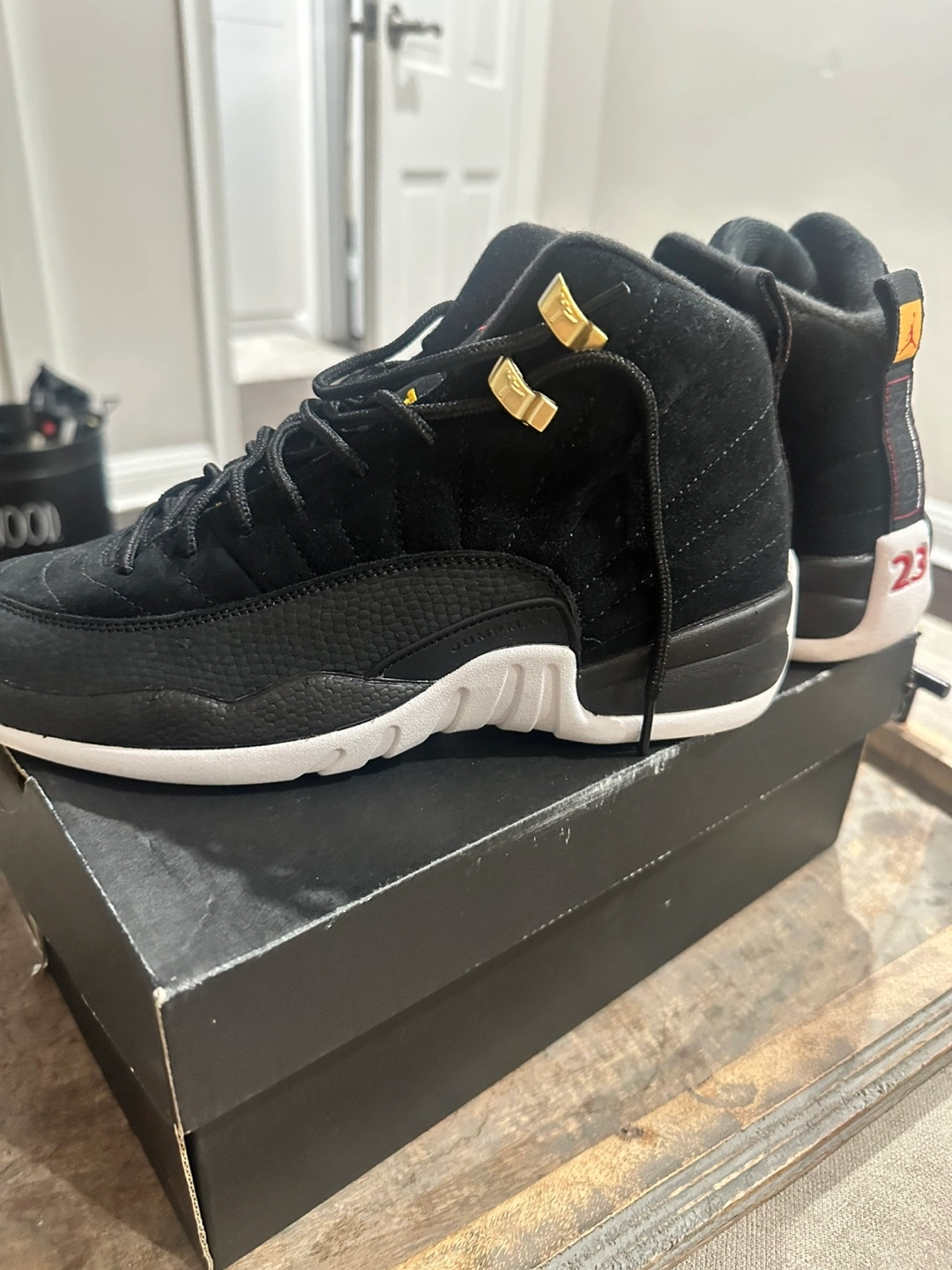 Selling a pair of Air Jordan 12 Retro GS in black, white, and taxi yellow! These are a size 7Y. The box is included. These retail for $140