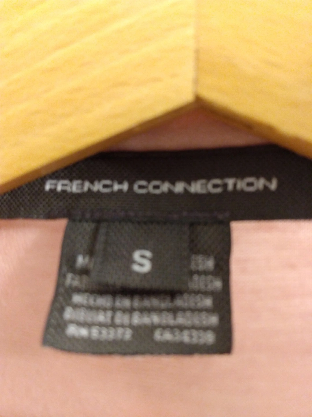 Here's a cute French Connection blouse in a lovely pink colour! It's a size small and features a unique pleated detail on the sleeves. Perfect for adding a touch of elegance to your wardrobe