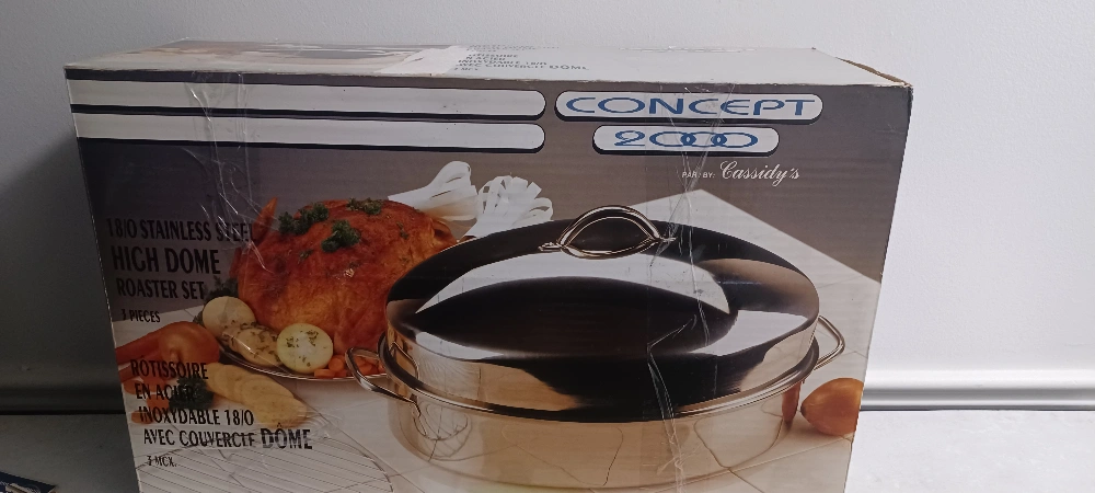 Selling a Concept 2000 high dome roaster set. It's made of 18/10 stainless steel and includes 3 pieces. Comes with the box!