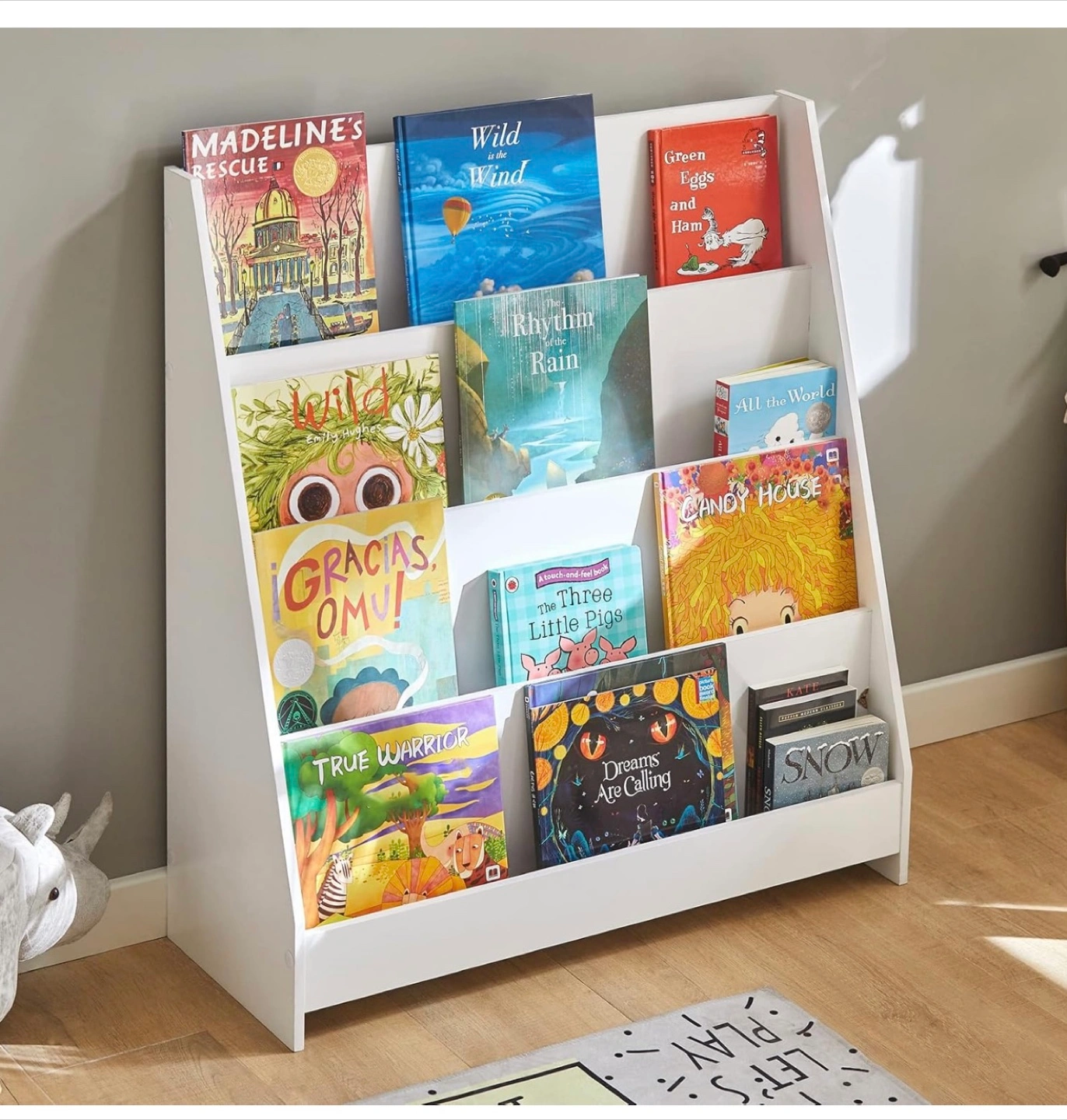 75Perfectly sized for little hands, this kids bookshelf makes it easy for children to grab their favorite stories. Turn any corner into a cozy Montessori reading nook that encourages learning and independence Featuring 4-tier open shelves, it blends modern style with functional space for books, toys, and décor. An ideal organizer for any nursery, baby room, or play area Made from eco-friendly MDF with smooth UV finish, this baby bookshelf is fully certified with rounded edges—no sharp corners, no toxins, just peace of mind for parents Includes labeled parts and tools for stress-free setup in minutes. Waterproof surface wipes clean easily, keeping your bookcase looking fresh even in high-traffic spaces Sized at 80 x 30 x 88 cm, this versatile kids book shelf holds up to 44.1 lbs (20 kg) of books and toys. Pick up in Mississauga near the intersection of Highways 401 and 403
