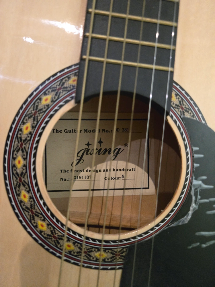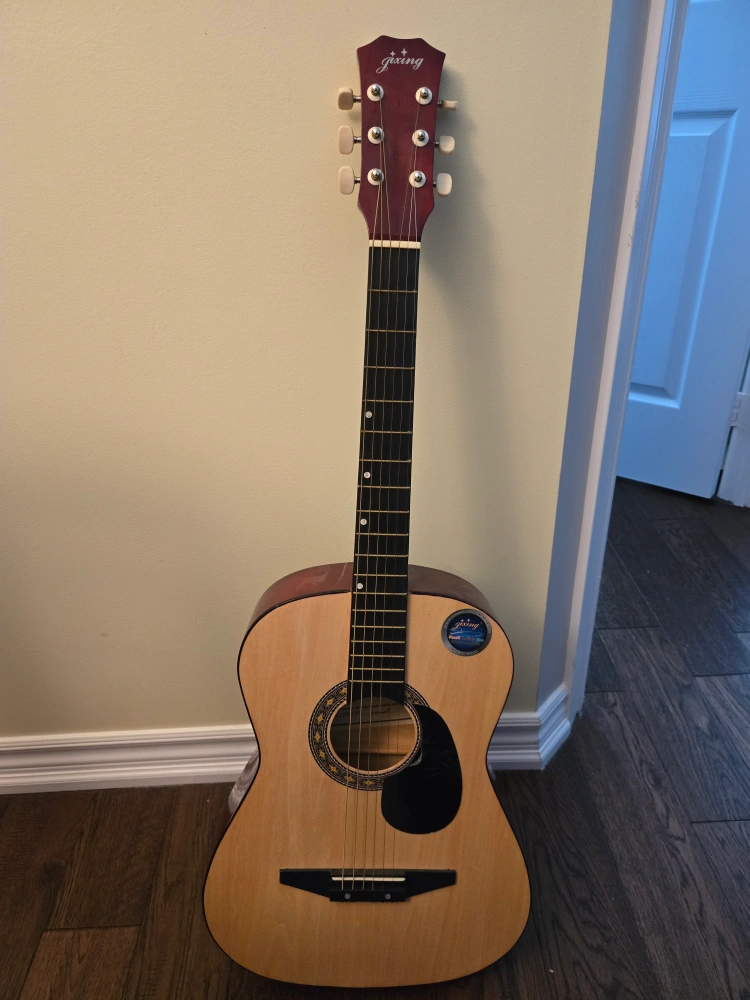 Selling a Jixing acoustic guitar, model DD-381. It's in good condition and comes with a case for easy transport and storage. Great for beginners or anyone looking for a reliable instrument to play!
