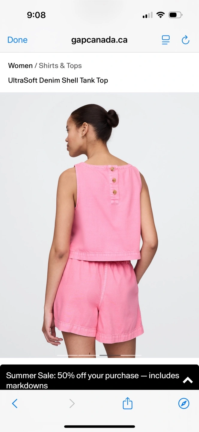 Selling a super cute Gap UltraSoft denim set! Tags on, brand new, never worn. Purchased wrong sizes and missed the return window. It includes the shell tank top and easy shorts, both in a French pink colour. Perfect for summer days!