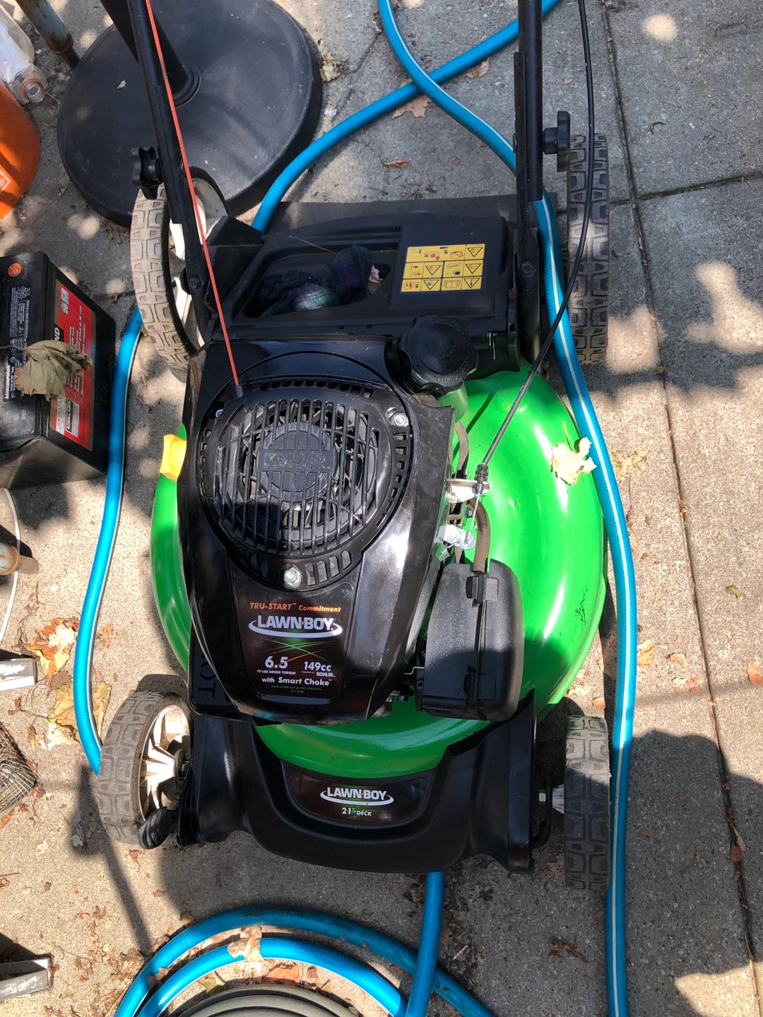 Selling a Lawn-Boy 21-inch gas push lawn mower with high wheels. In near new condition!