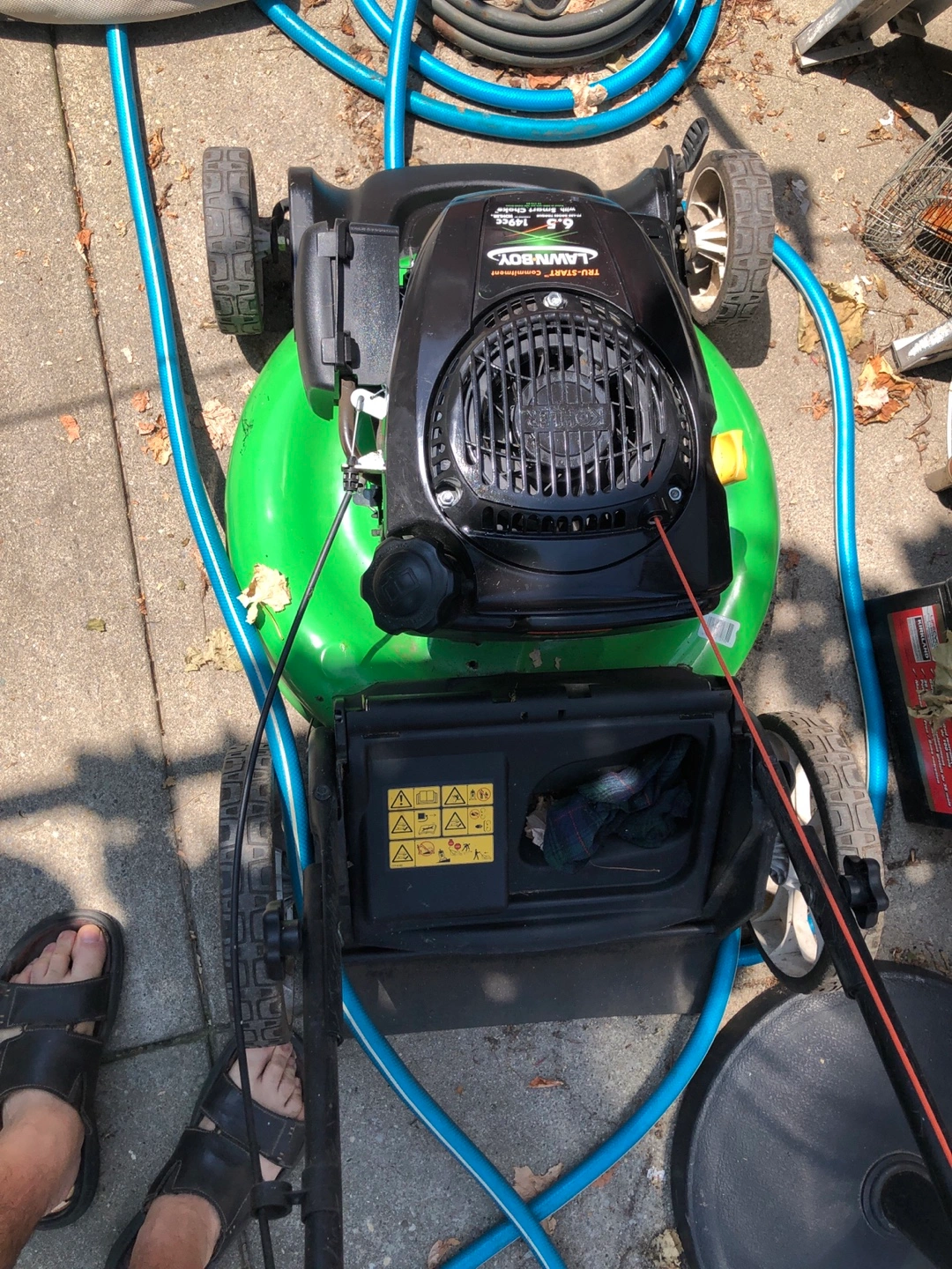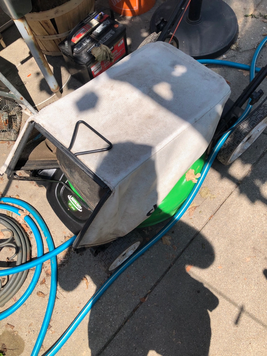 Selling a Lawn-Boy 21-inch gas push lawn mower with high wheels. In near new condition!