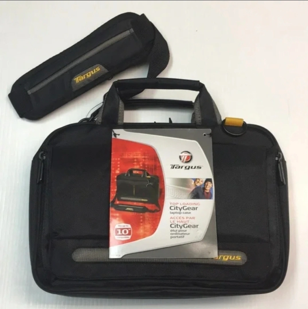Here's a Targus CityGear laptop case in black! It's in great shape and ready to protect your laptop. The bag measures approximately 14. inches wide and 10 inches tall. Comes with a shoulder strap for easy carrying