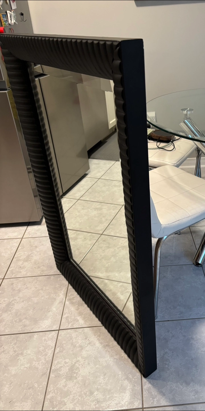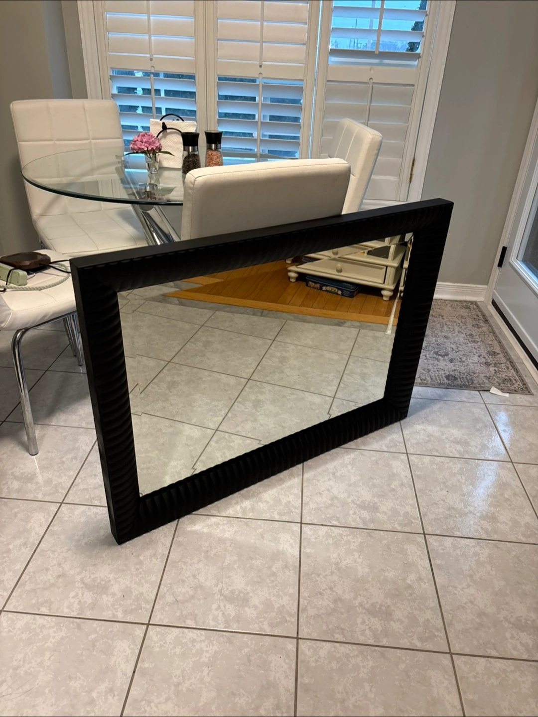 Black framed, large mirror, Great condition. Great for hallway or bathroom. Thick fashionable frame.