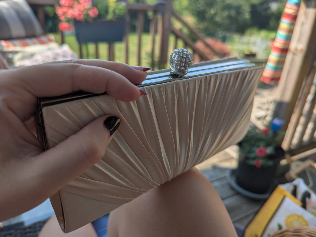 I'm selling a vintage lovely Charlie RSVP evening clutch in a champagne colour! It features a delicate chain strap, perfect for a night out or special occasion. The clutch is in great condition and ready to add a touch of elegance to your outfit.