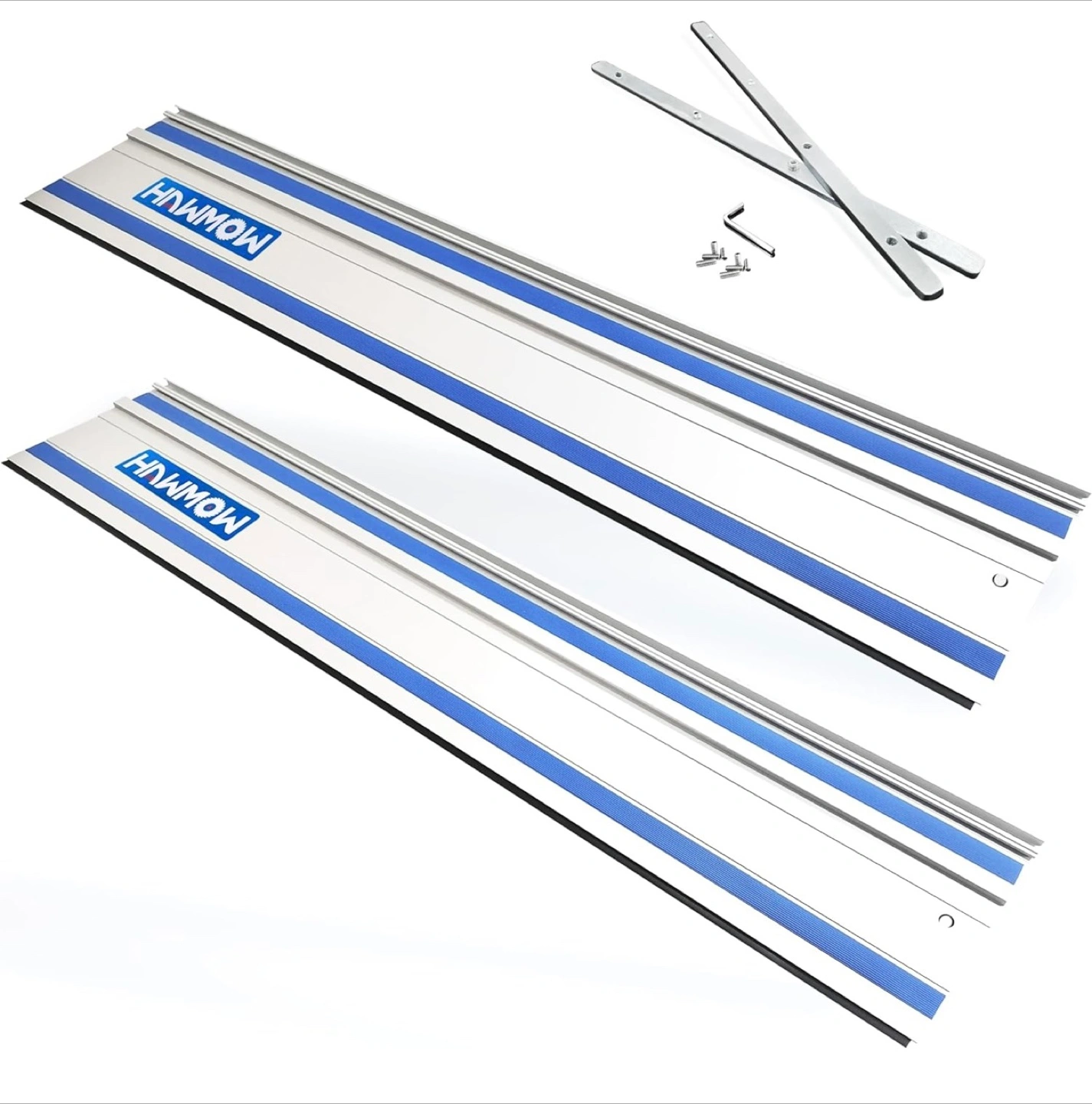 Selling a Hnwmow track saw guide rail set. This sliver track saw guide rail joining set is widely applicable and compatible with Makita plunge saws and Festool track saws. With the 2 connectors, you can quickly join 2 pieces of 55" track saw tracks together, helping to produce long cuts over 9 feet