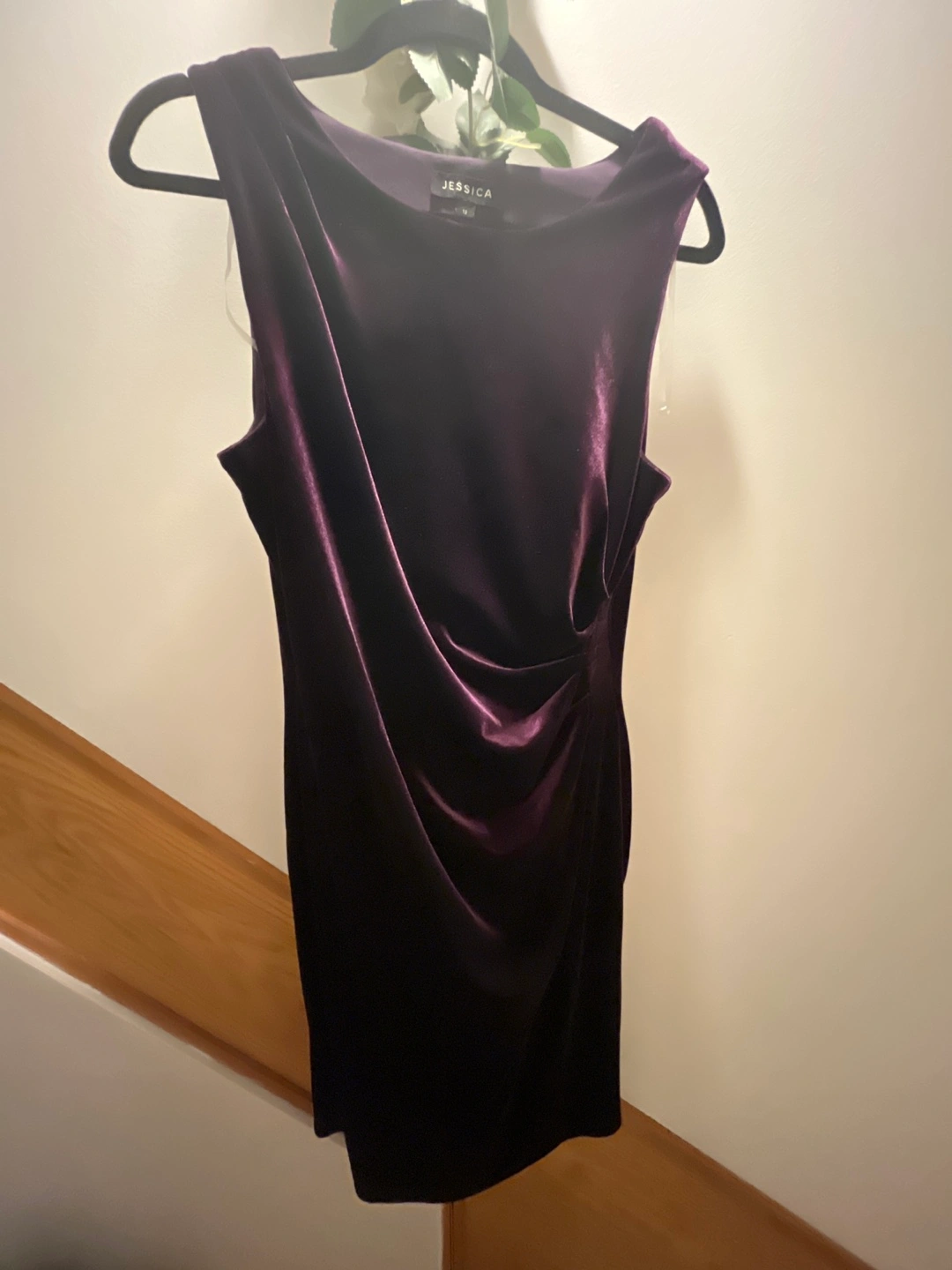 Beautiful Jessica purple velvet dress in size 12. It's in great condition and would be perfect for a special occasion or a night out. The velvet material gives it a luxurious feel, and the design is very flattering. No scuffs or tears. Pickup near Stockyards, St Clair/Keele.